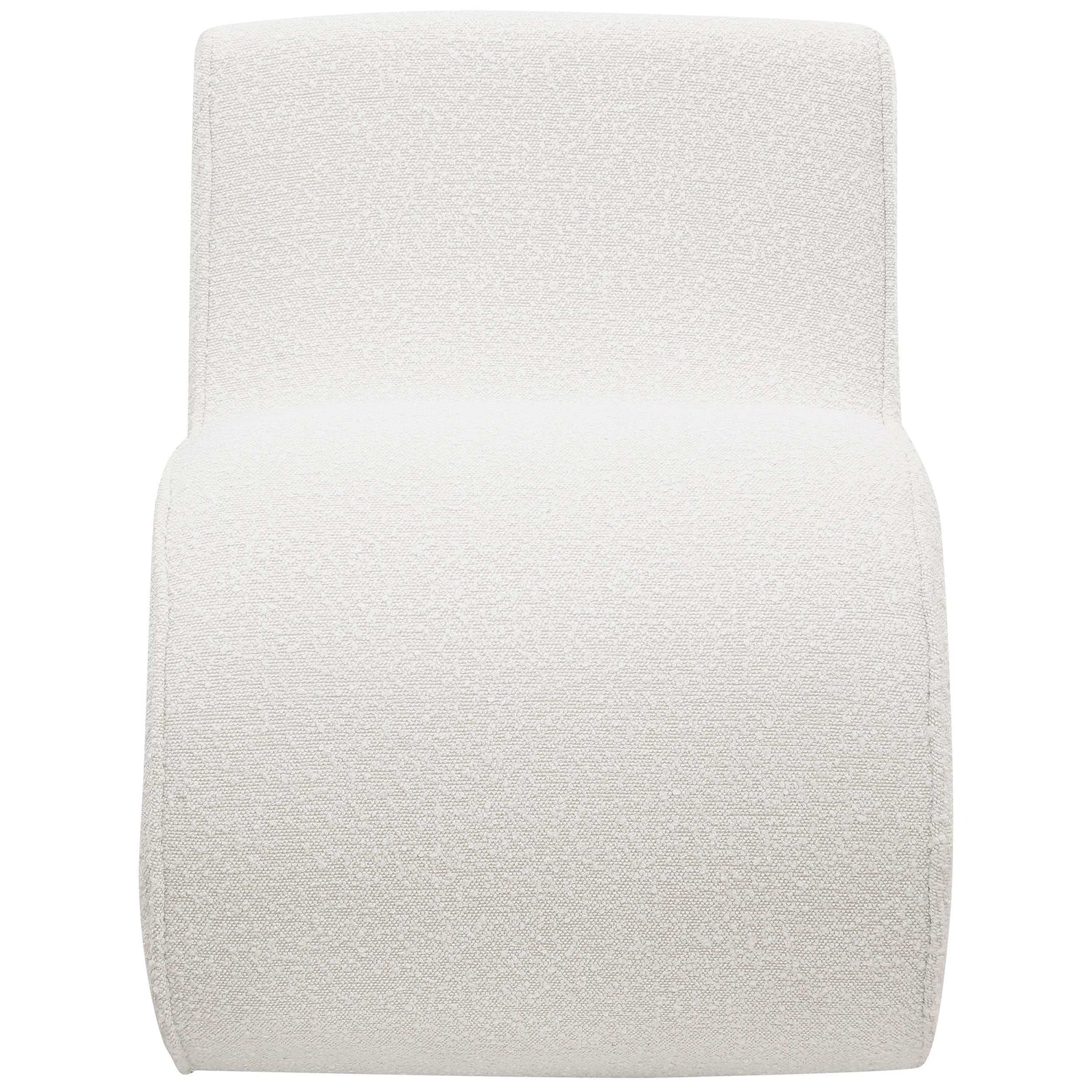 Step into the vanguard of home décor with this modern accent chair, its bouclé fabric not just on-trend but a textural revelation. The chair's unique shape is a conversation starter, sculpted to cradle and command attention in any setting. It's an embodiment of form meeting function, where the tactile allure of the fabric contrasts with the fluidity of its silhouette. This piece is not merely a chair; it's a testament to contemporary design, inviting you to immerse yourself in its stylish embrace. Let the chair's sinuous form and the fabric's cozy charm transport you to a world of chic comfort.