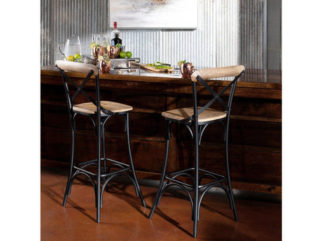 Sania Antique Black & Beige Bar Chair (Winged Backs) (Set of 2)
