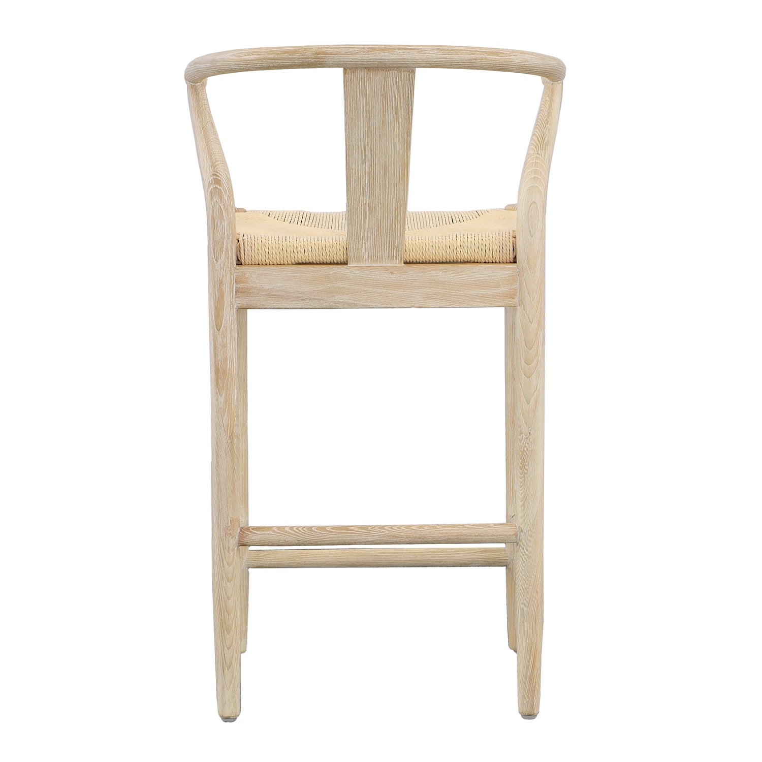 The Renault Counter Stool exudes elegance with its solid oak wood frame and Danish paper cord seat. Finished in a light bleached natural tone, it offers a blend of modern sophistication and classic craftsmanship. Ideal for adding a touch of refined style to any counter space.
