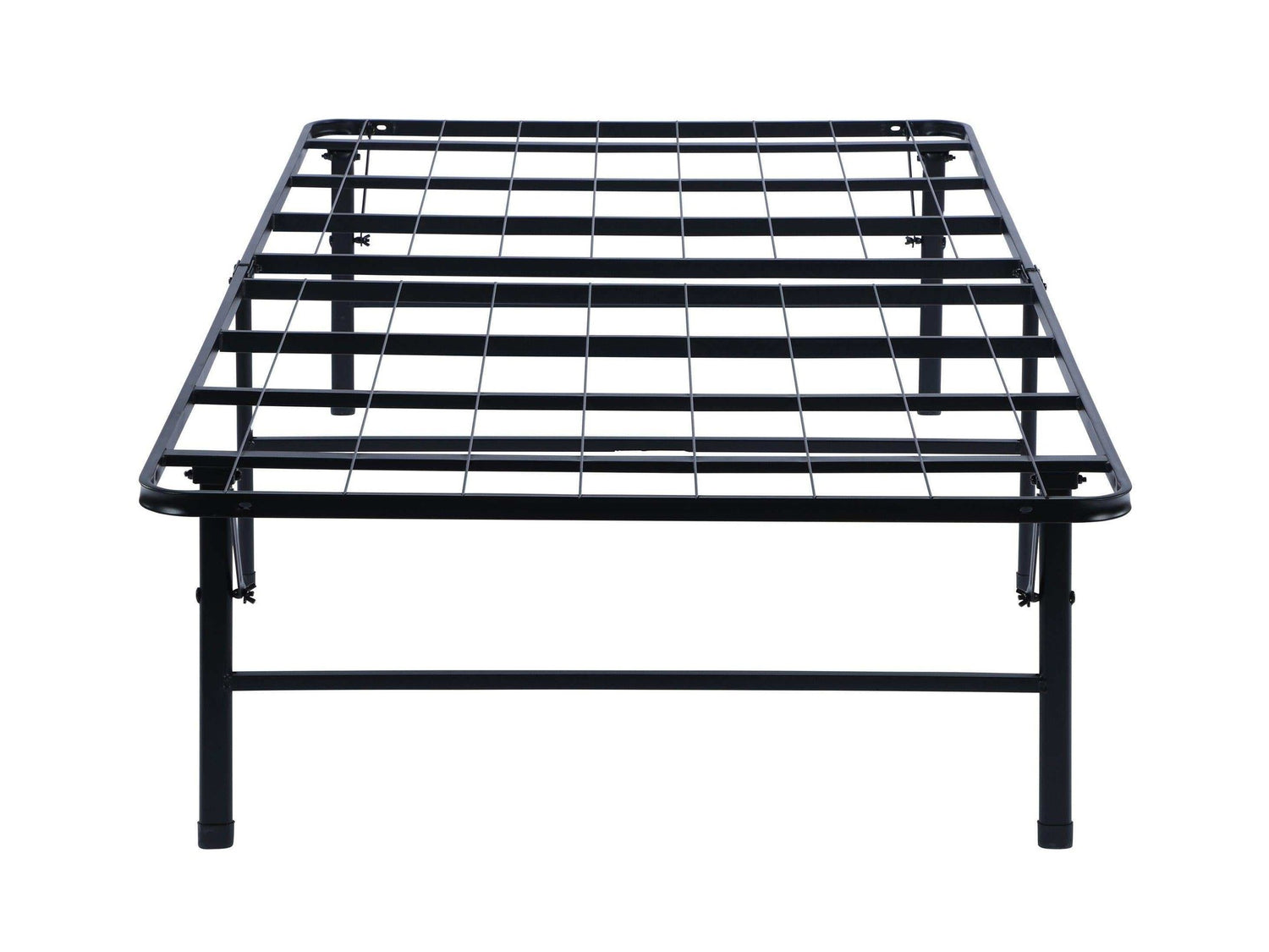 - The epitome of simplistic convenience, this reliable folding bed frame in a black powder coated finish is a must-have platform base in every home