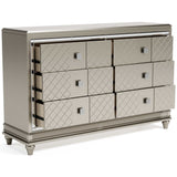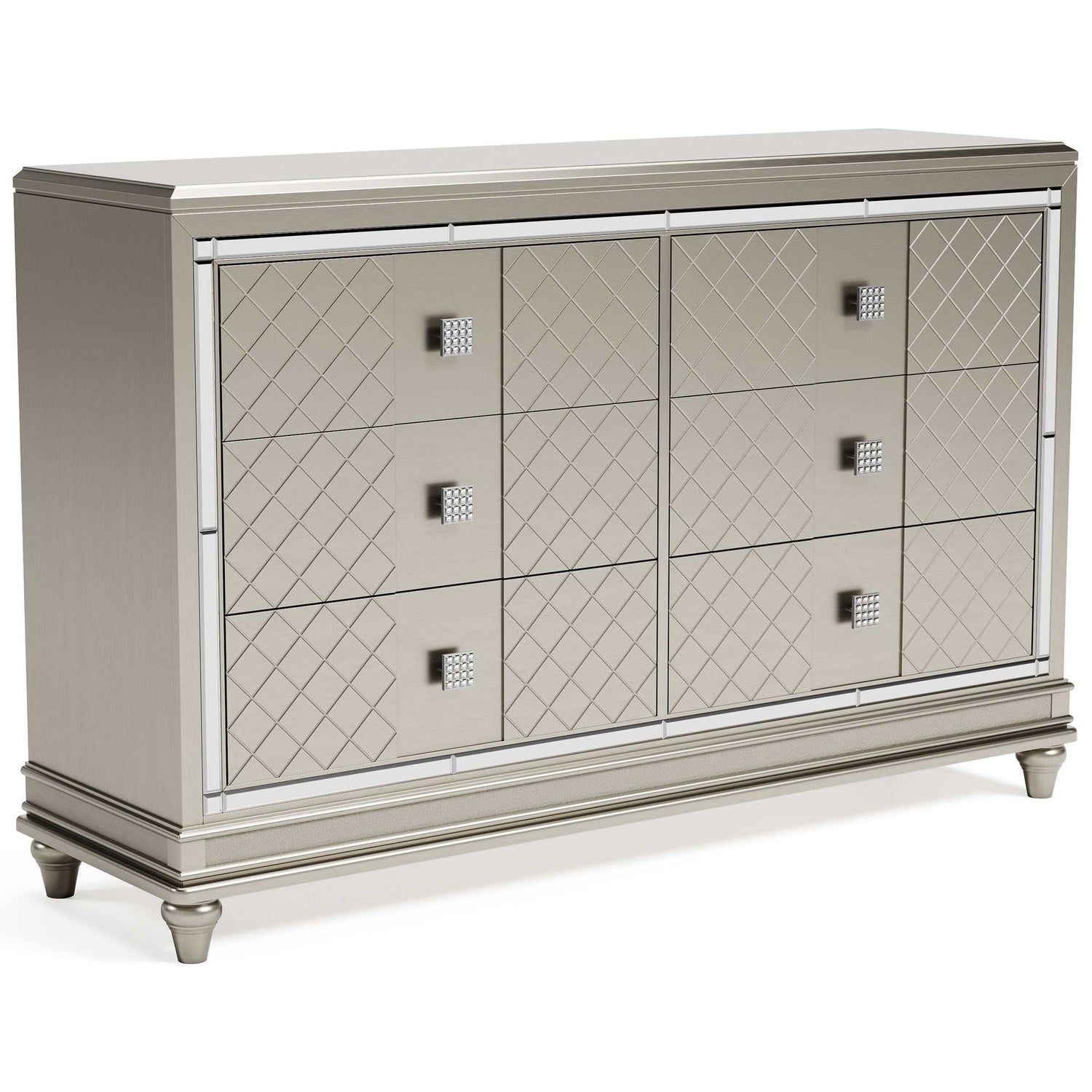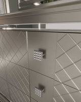 When nothing but the best will do, the opulent finishes and show-stopping design of this dresser is nothing short of spectacular. Embossed diamond-patterned drawer fronts with crystalline pulls are surrounded by beveled mirrored detailing for a look that evokes a sense of ease and elegance. What a beautiful reflection of your good taste.