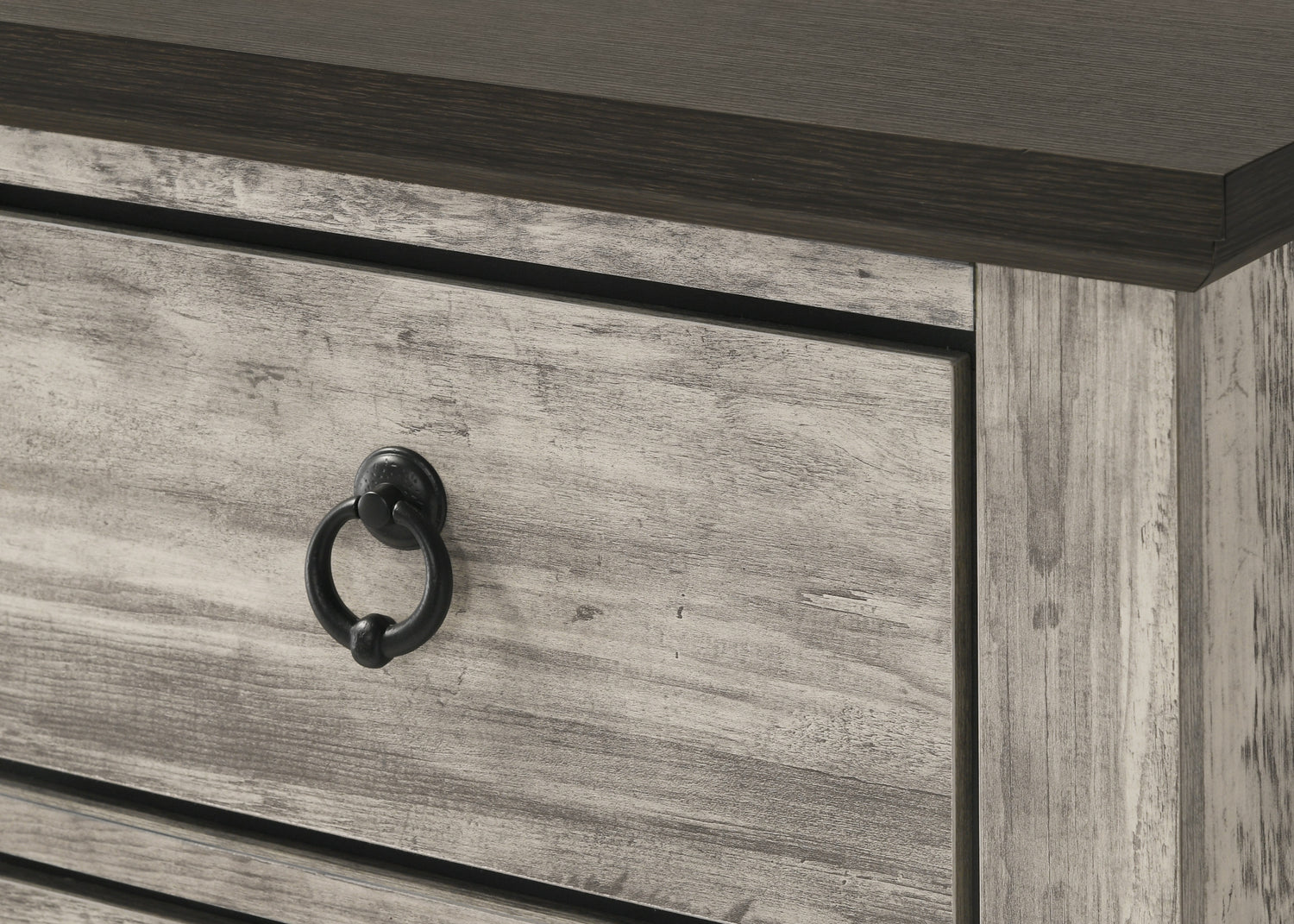 Immerse yourself in the rustic charm of this exquisite bedroom collection, where timeless design meets sophisticated craftsmanship. The set exudes a warm, weathered aesthetic that effortlessly complements any home decor, bringing an air of tranquil elegance to your personal sanctuary. Each piece is meticulously constructed with durability in mind, featuring robust frames, ample storage, and finely detailed hardware.