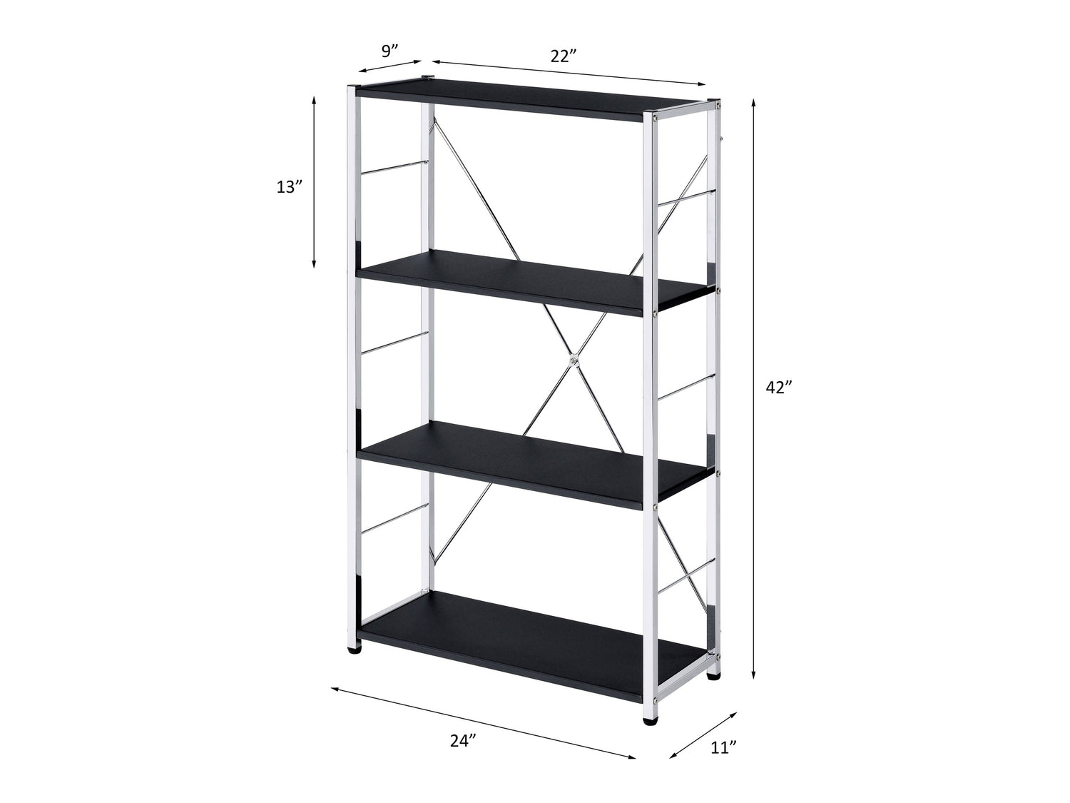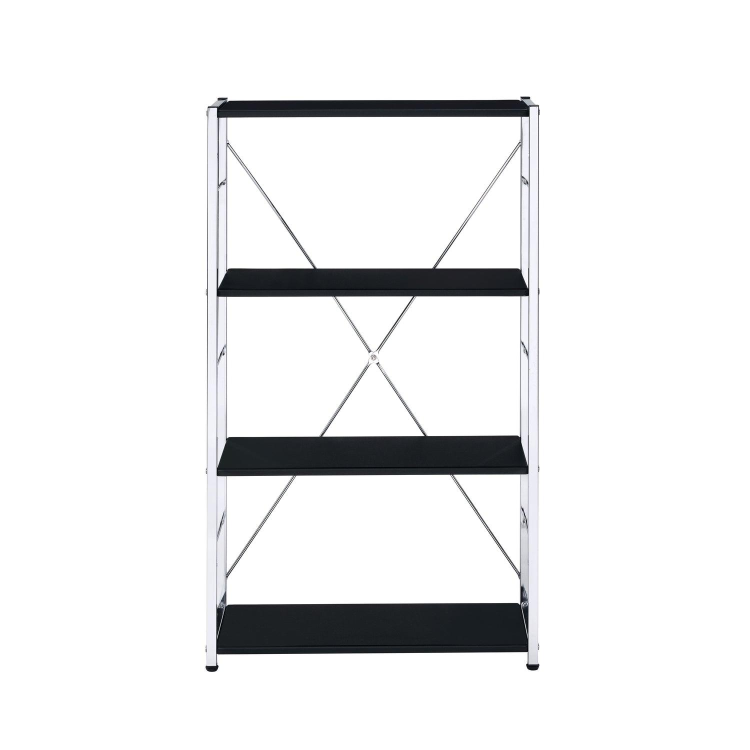Rectangular BookshelfModern Concise Design Chrome Metal Frame X-Shape Cross Bar4 Tier Shelf Book Case