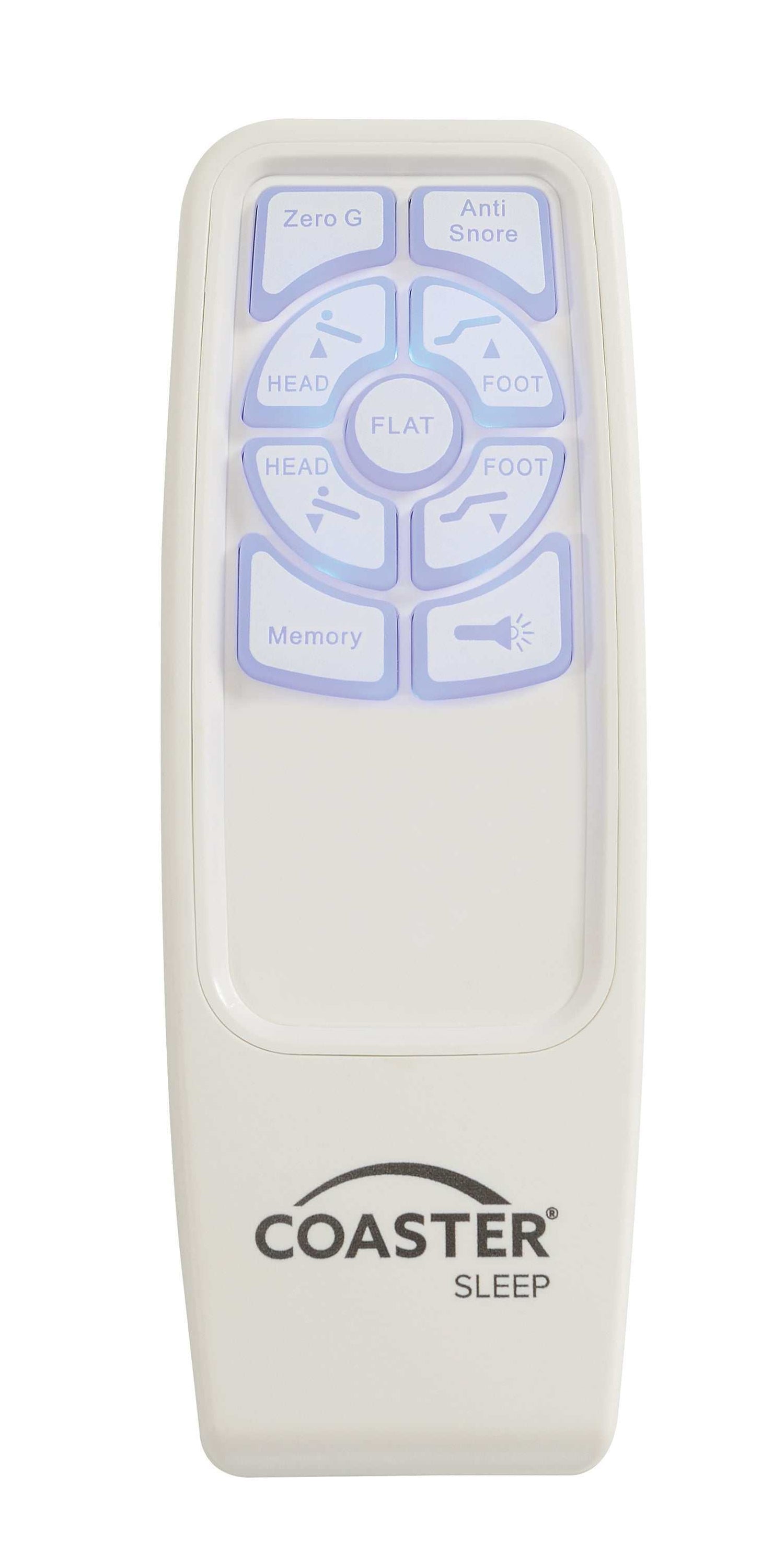 - Wireless remote features back-lit soft-touch controls for independent head and foot incline, preset Zero Gravity/Anti-Snore/Flat/Memory positions, as well as a handy integrated flashlight