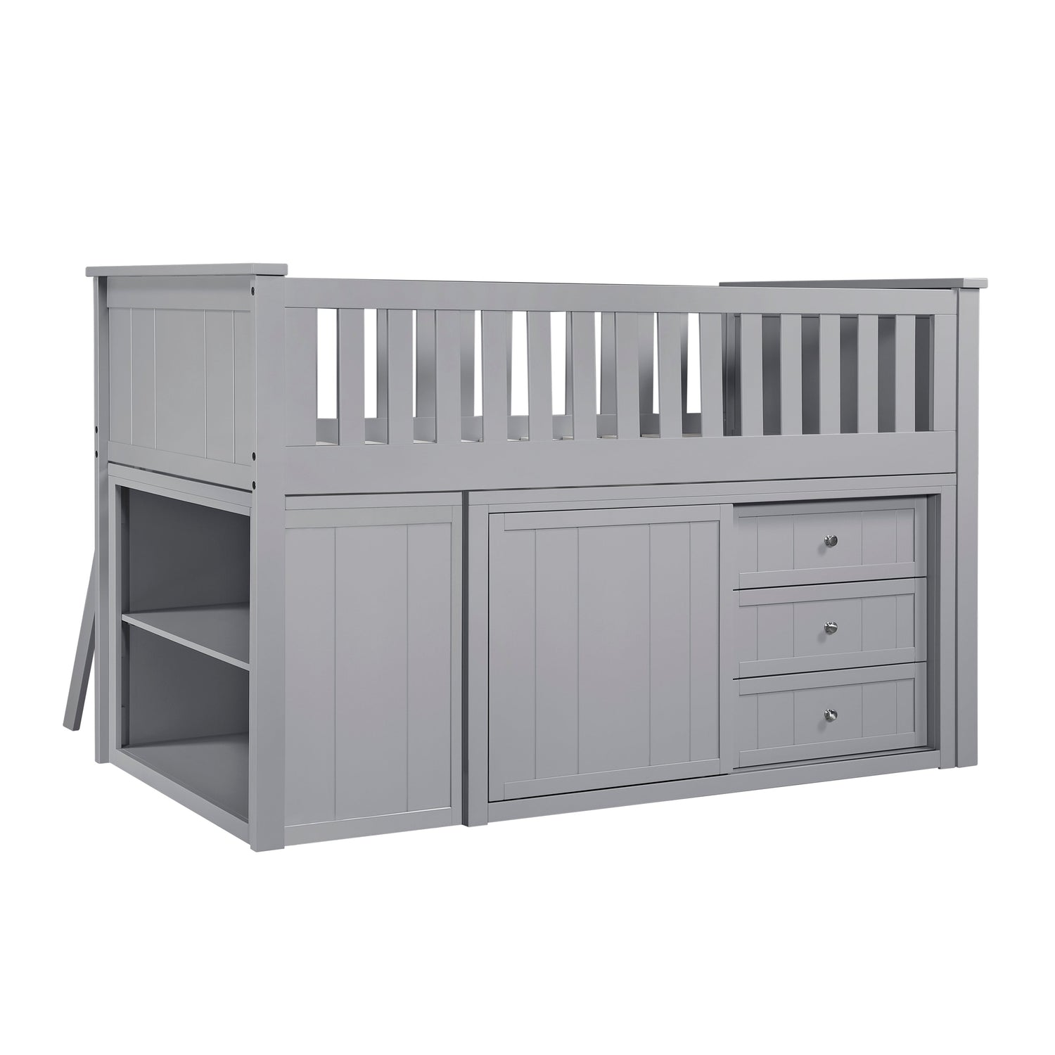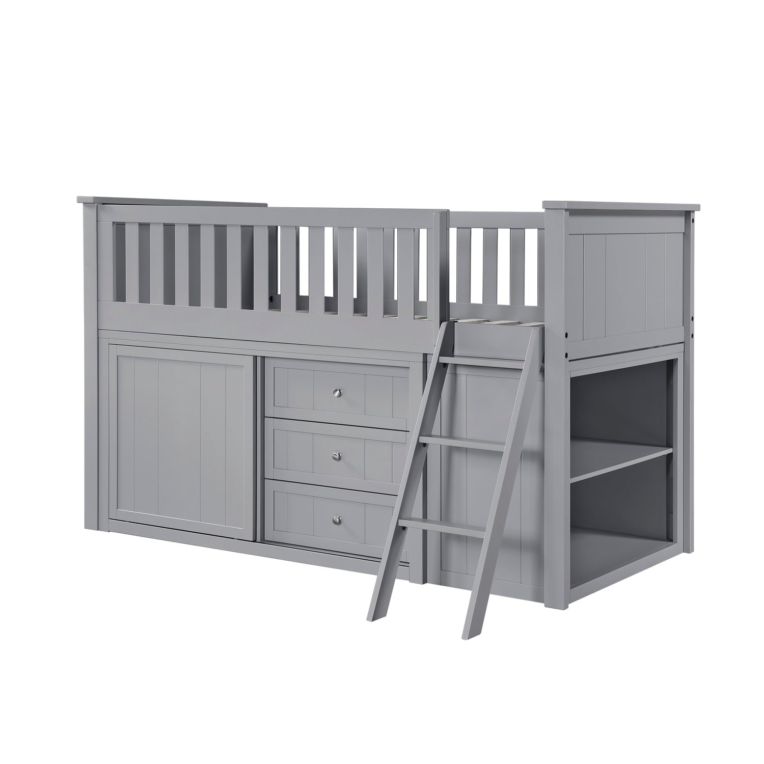 Orion Gray Low Loft Bunk with Bookcase & 2 Dressers