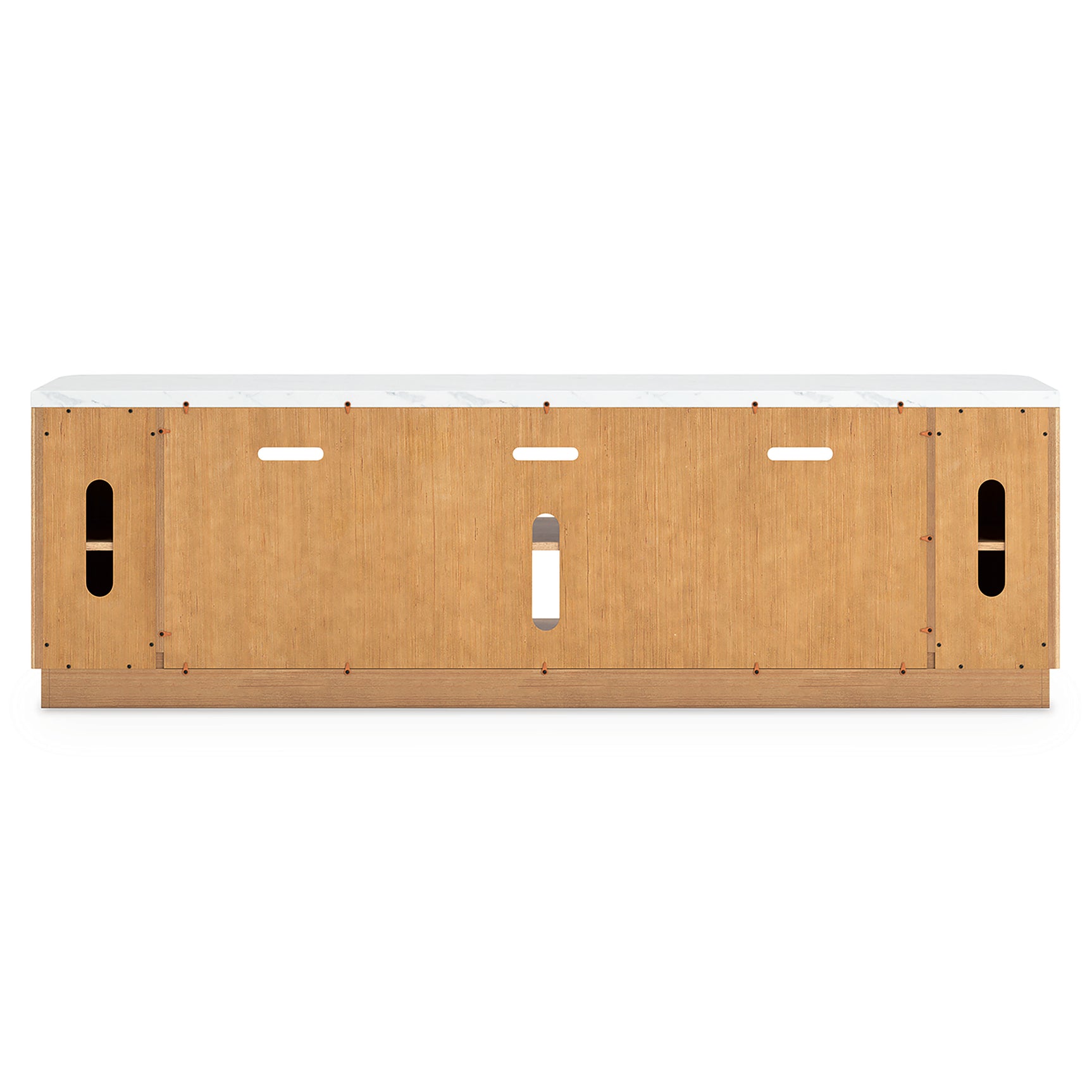 Elegance meets earthy charm in this TV stand. Crafting a contemporary living room? The faux marble top expertly pairs with the reeded base for a trend-right take on day-to-day function. Open shelving and subtly integrated storage cabinets make it easy to store and display media accessories in style.