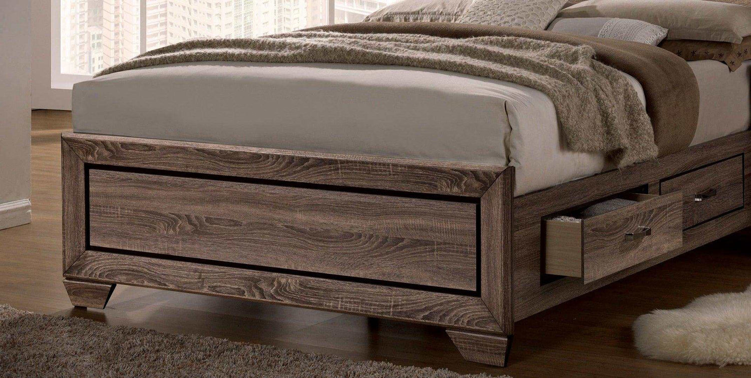 Kauffman Washed Taupe Queen Panel Bed w/ Storage