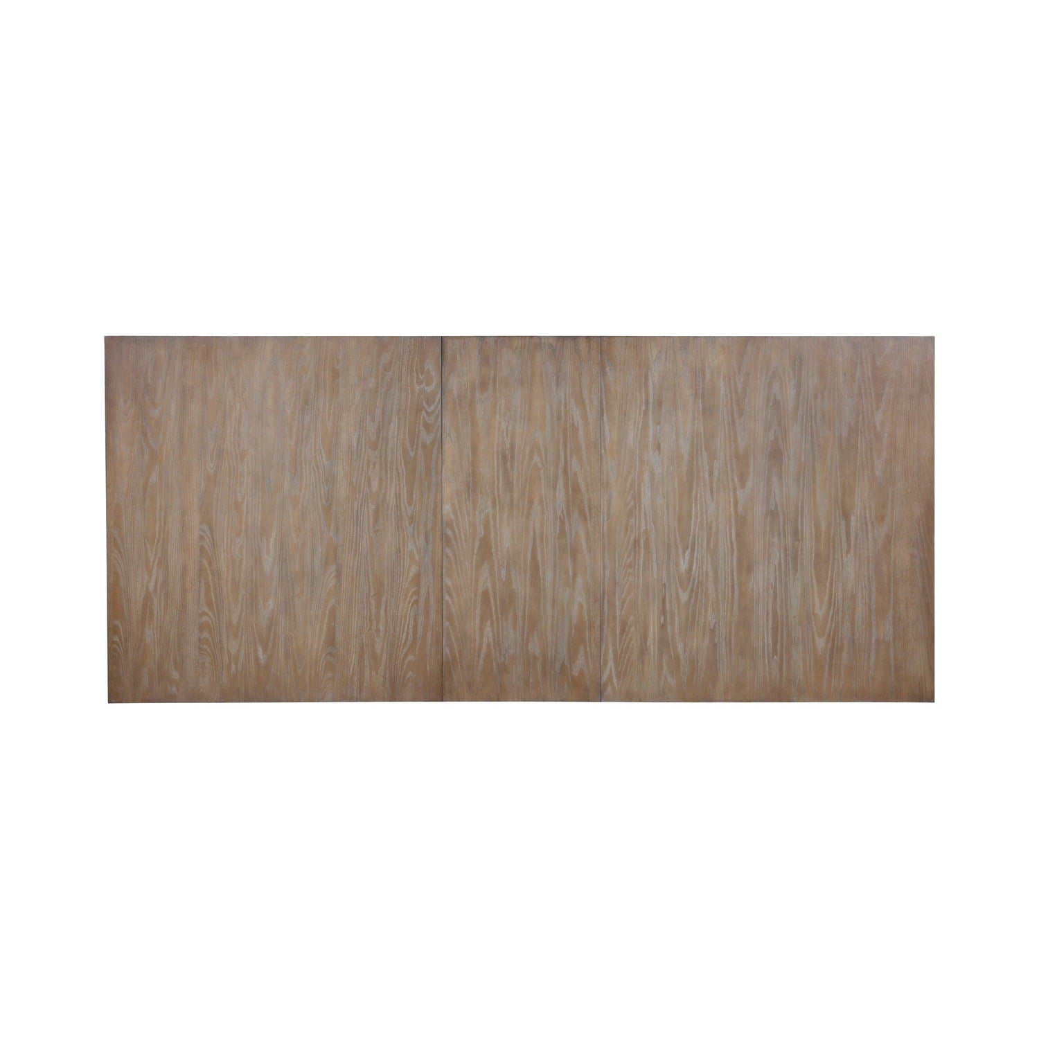 Soft and romantic finishes create an inviting aura for this wood dining table. Beautifully equipped to seat six to eight, this rectangular table is perfect for a growing family. Crafted in solid Asian hardwoods, a barley brown finish sets the perfect tone in a transitional space. Its stylized base features four curvy legs resting on an I-shaped foot. Indulge in holiday meals and share daily conversation at this exquisite dining table.