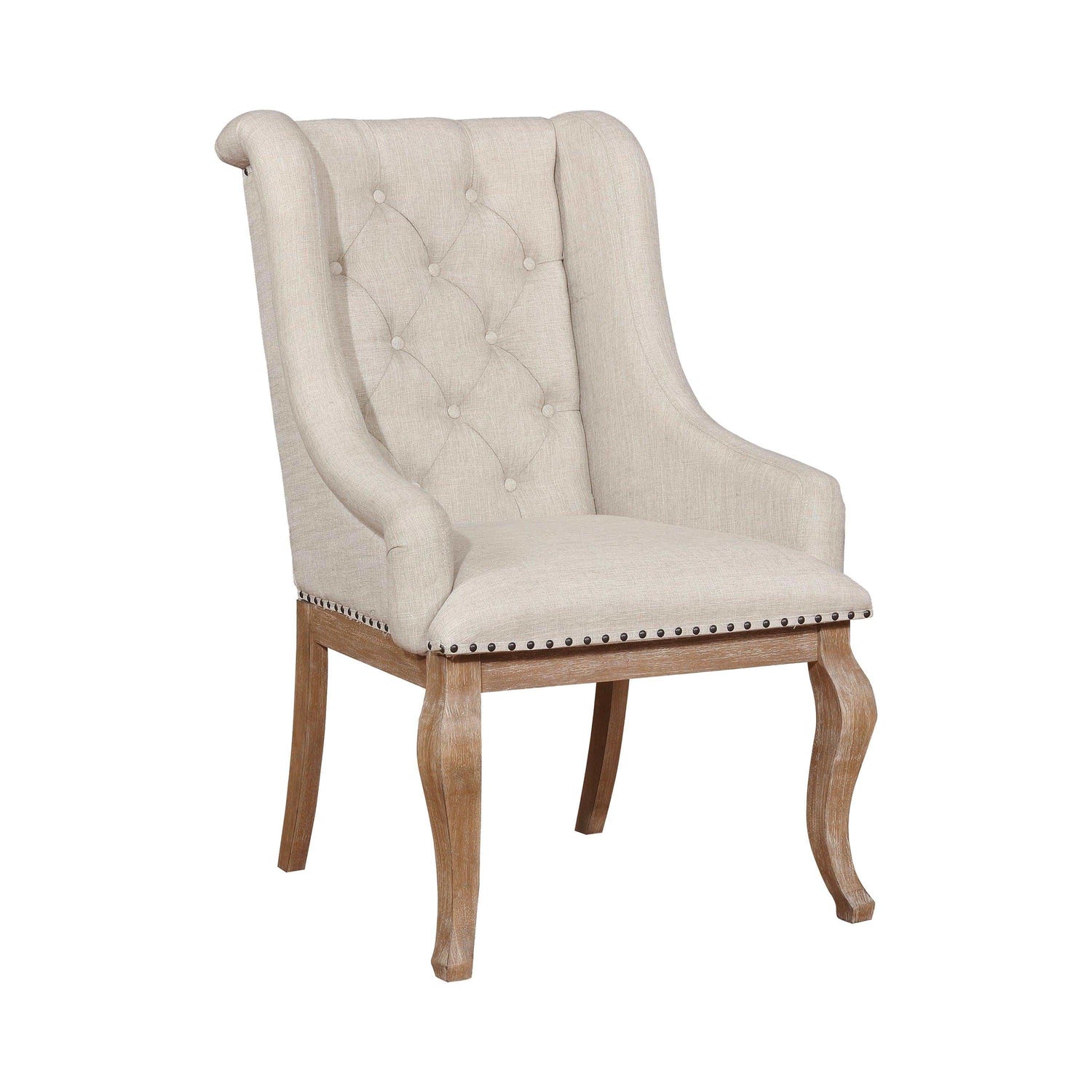 Soft and romantic finishes create an inviting aura for this wood dining table. Beautifully equipped to seat six to eight, this rectangular table is perfect for a growing family. Crafted in solid Asian hardwoods, a barley brown finish sets the perfect tone in a transitional space. Its stylized base features four curvy legs resting on an I-shaped foot. Indulge in holiday meals and share daily conversation at this exquisite dining table.