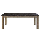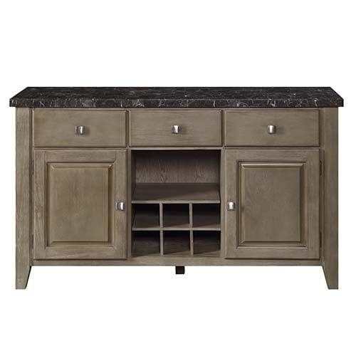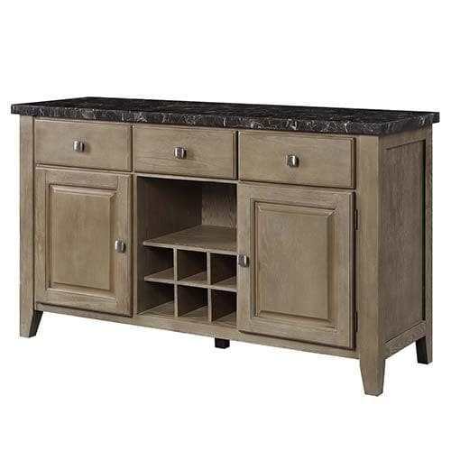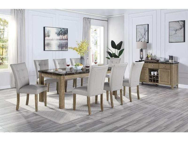 The Charnell dining collection is designed in a transitional style to complement any home. The beautiful marble tabletop and oak finish complement each other beautifully. The standard dining height table and durable marble top will withstand the test of time. The PU padded dining chairs are just as comfortable as they are stylish. The matching server is a wonderful storage solution for your dining area, also featuring a marble top and oak finish.