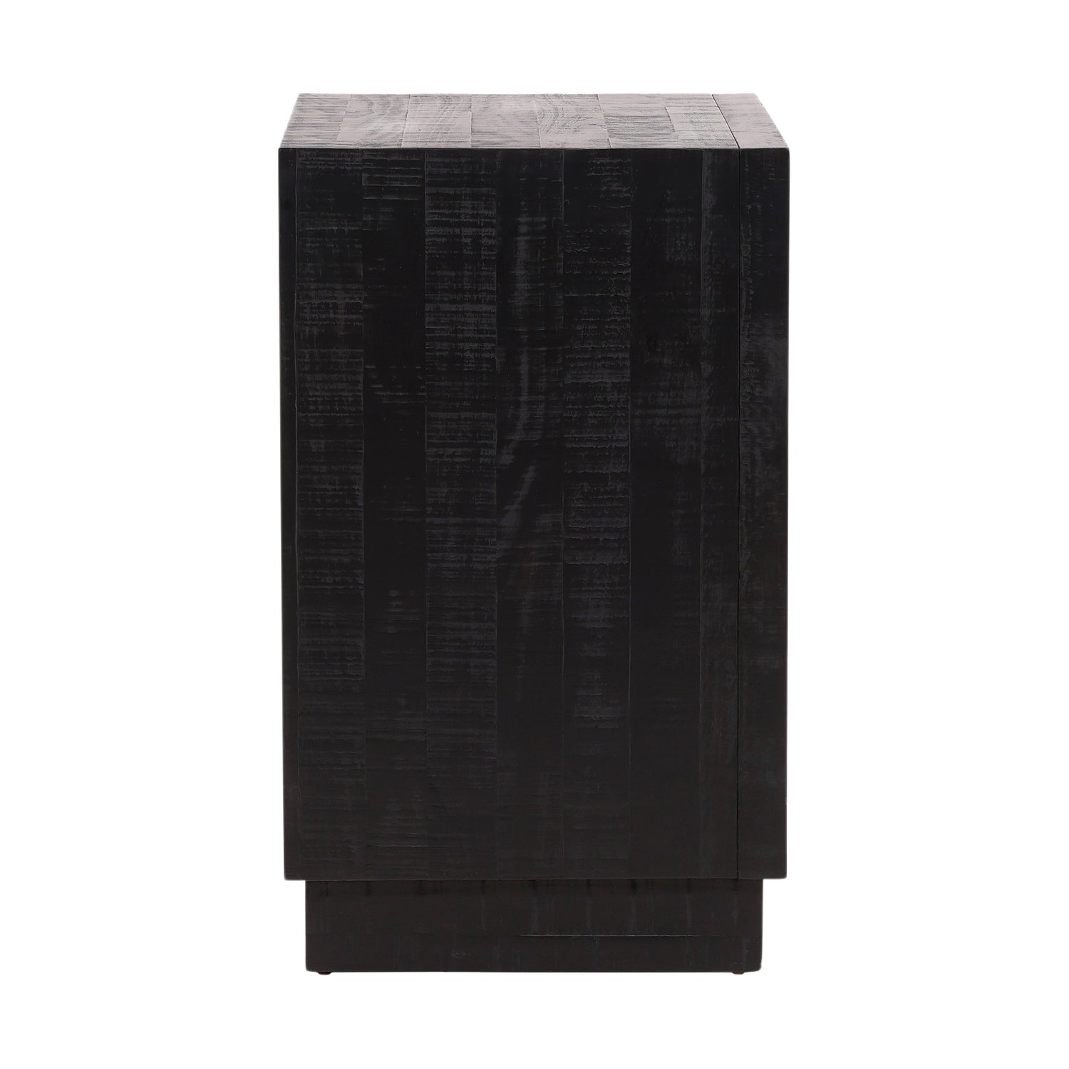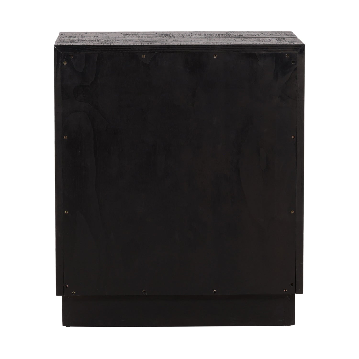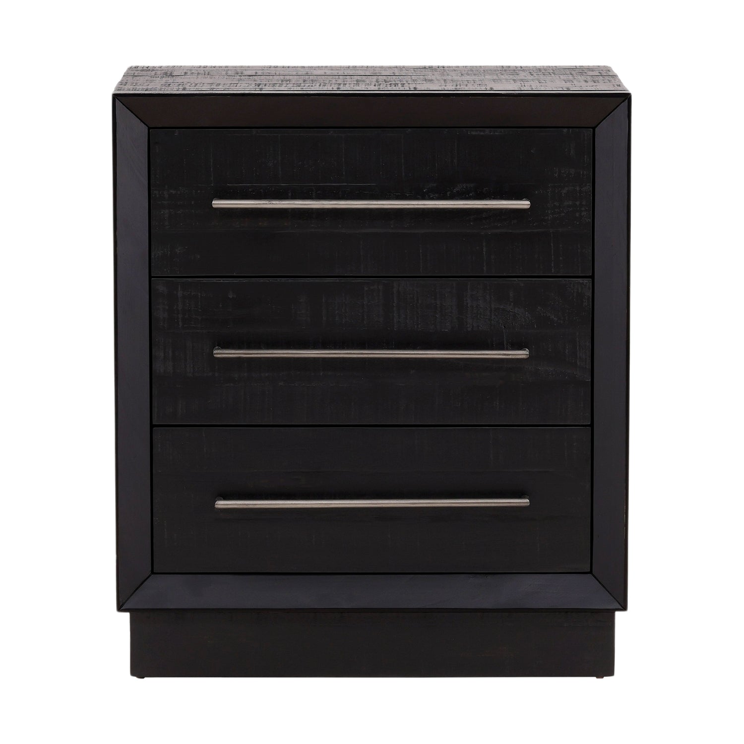 The Humphreys Nightstand is crafted from sturdy pine wood and metal, featuring a black finish. It is accented with antique nickel handles, offering a sophisticated touch. This nightstand combines practicality and style, perfect for any modern bedroom. Its timeless design enhances the overall decor while providing convenient storage.