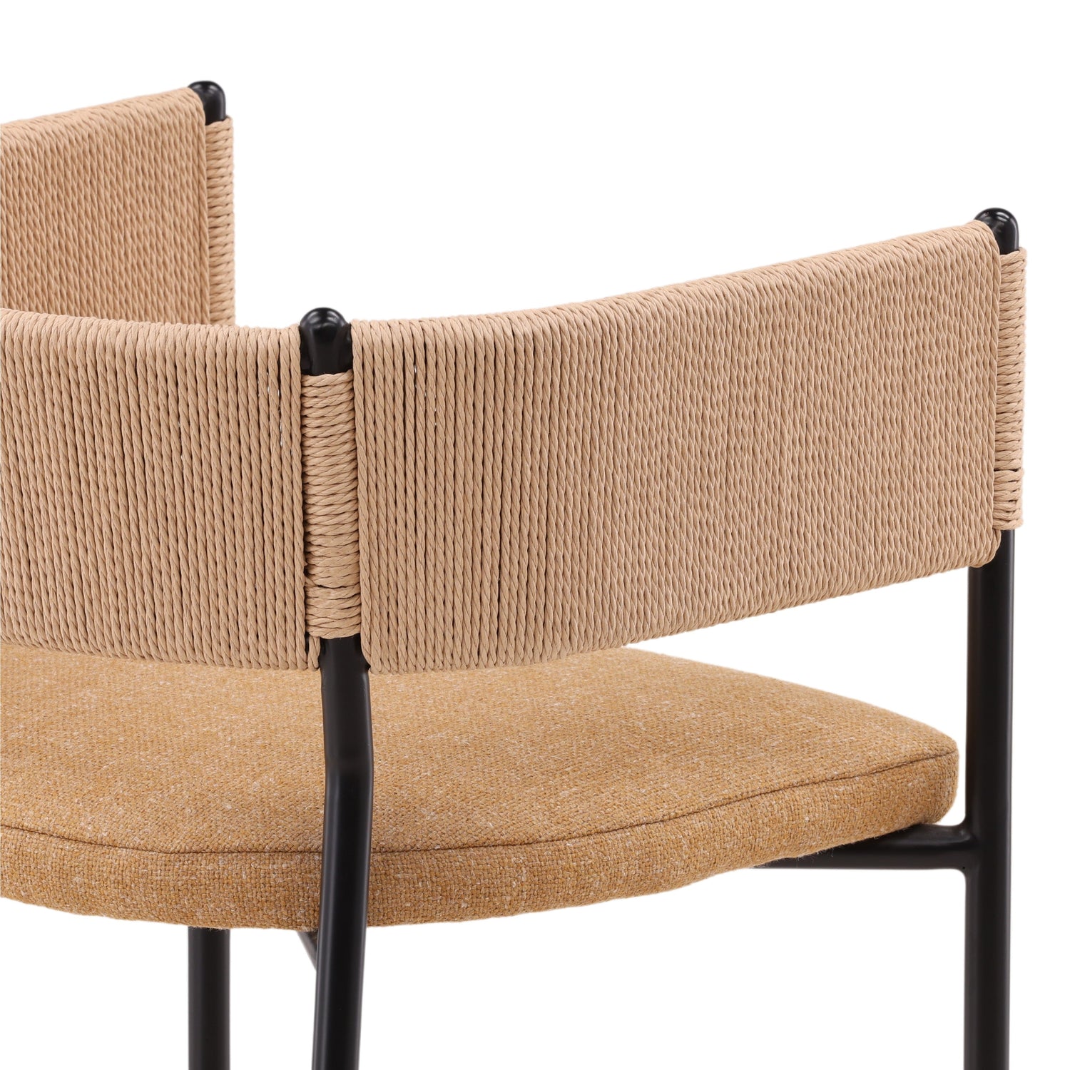 The Quetzal Counter Stool combines basketweave fabric, paper rope, and metal for a striking blend of texture and durability. Featuring a gold and matte black finish, this stool adds a modern yet natural touch to your counter or bar space.