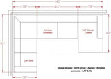 - Right-arm facing sofa : 92" W x 38" D x 39" H