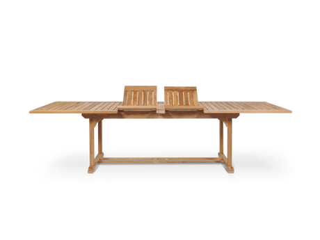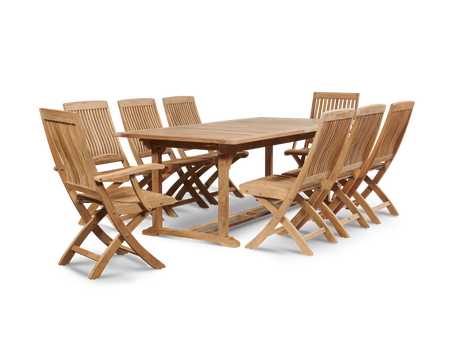 Devon 9-Piece Rectangular Teak Outdoor Family Dining Set with Extendable Table and Folding Chairs