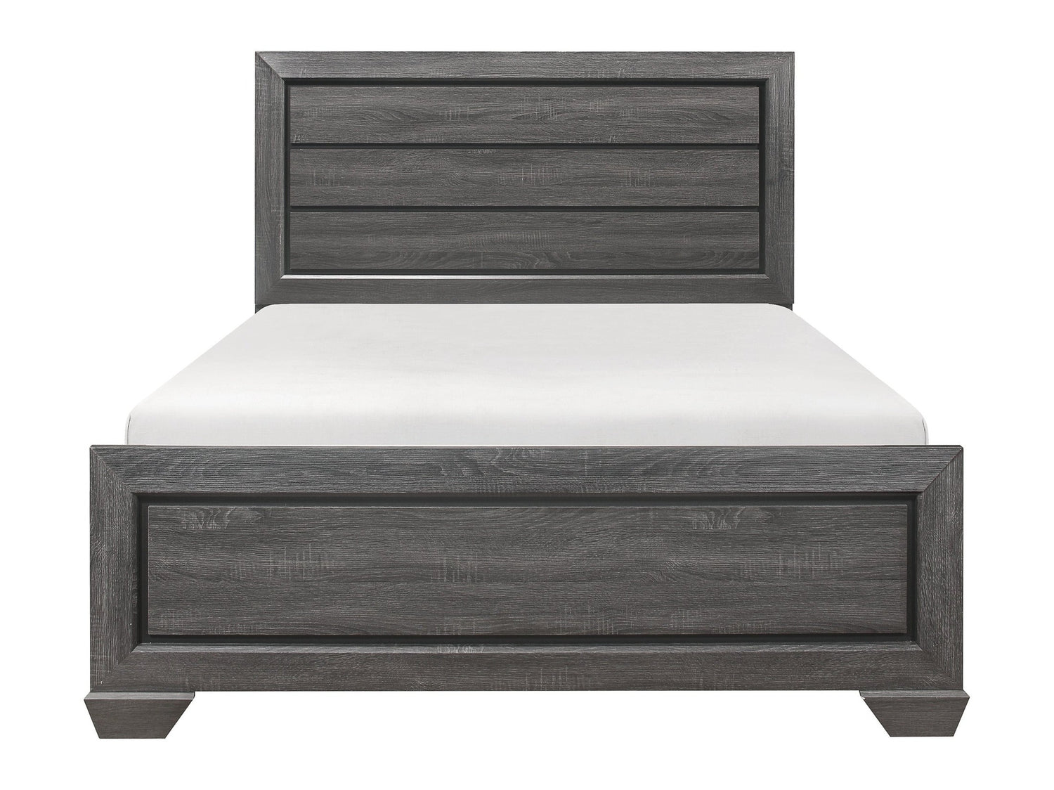 Blending the elements of contemporary design and rustic aesthetic, the Beechnut Collection is a unique addition to your bedroom. Dark under-paneling serves to highlight the gray finish of the embossed faux-wood veneer of the raised panels on the Full bed. Also available in natural finish.