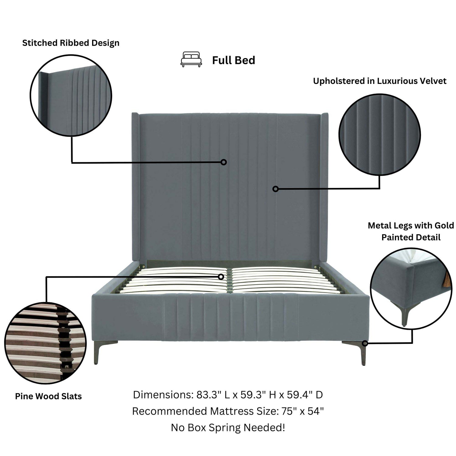 - No Box Spring Needed! Solid Pine Wood Slats Included.