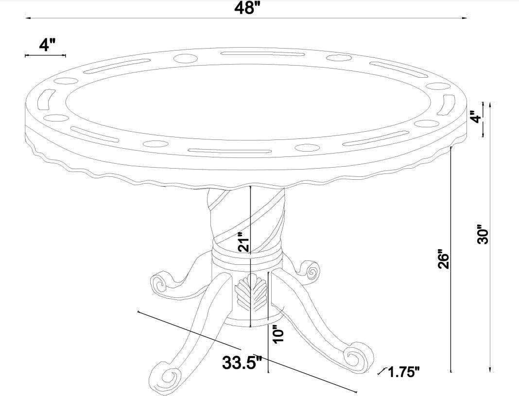 - Three-in-one table with tobacco finish allows easy conversion from dining to gaming