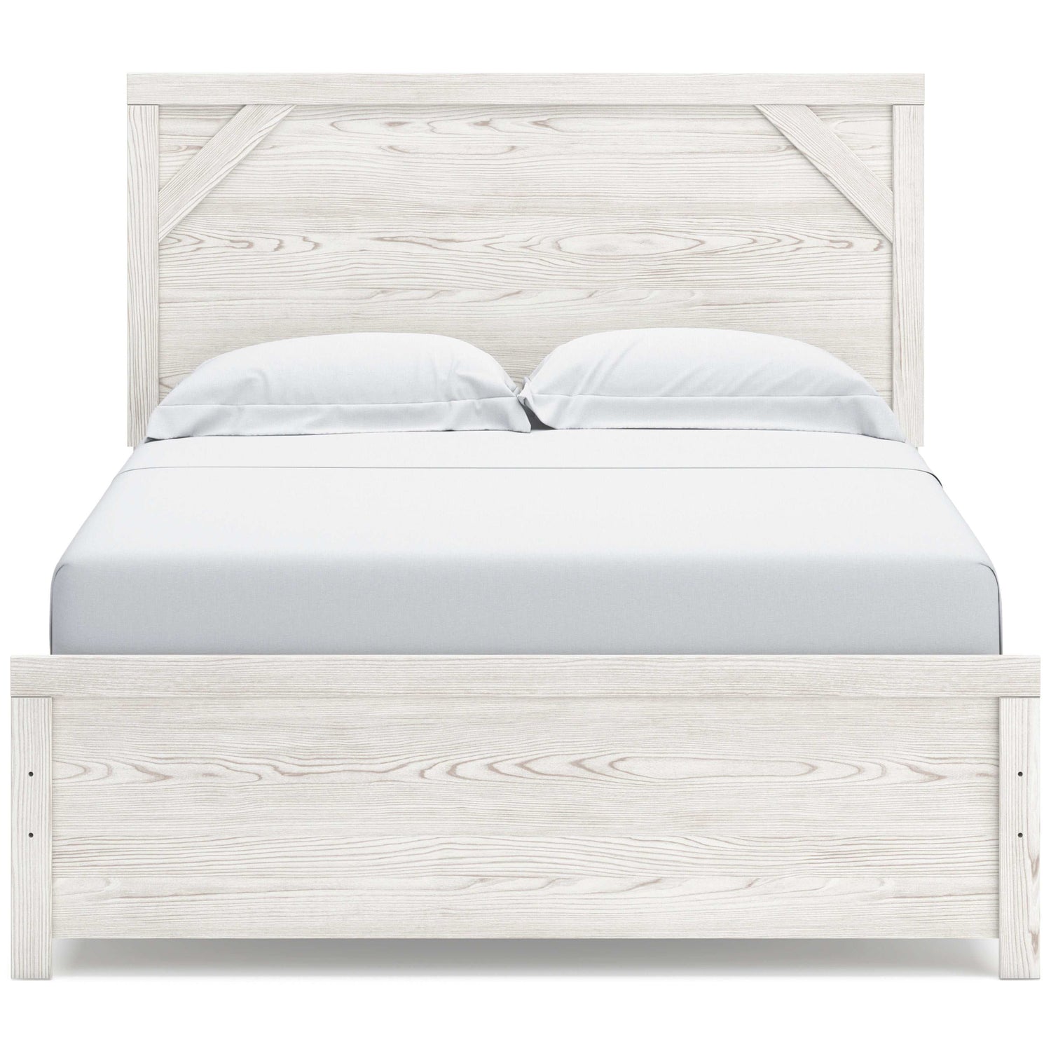 Cool, clean, and casually modern. This queen-panel bed’s wispy whitewash finish sets the tone for your calming sanctuary. Framed elements and cross-brace accents add dimension and authenticity to the bed’s simply stunning profile.