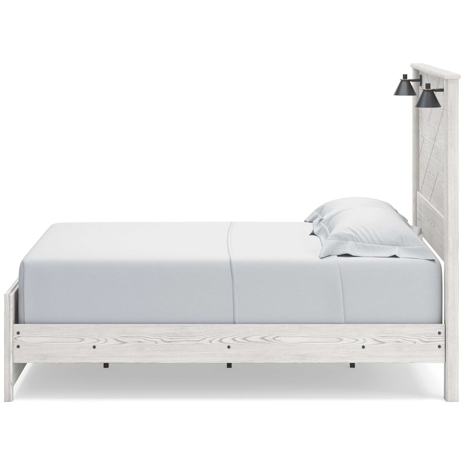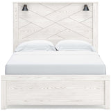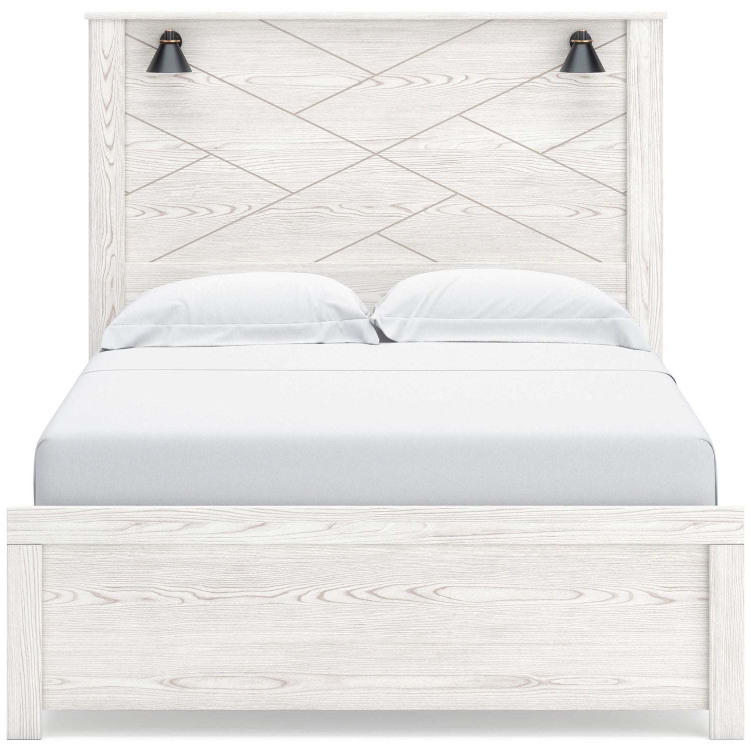 Gerridan White & Gray Queen Panel Bed Frame w/ Sconce Lights HB