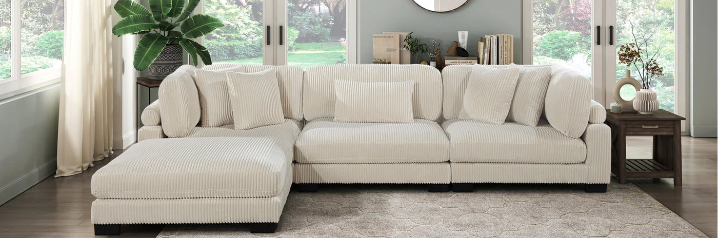 - ✔️ Comfort-focused seating with plush cushions, ergonomic support and family-friendly fabrics.