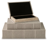 This set of three keepsake boxes makes storage so quietly understated. The beige linen cover is complemented inside with a black velvet lining. The perfect place for your dearest keepsakes, this set adds a touch of casual elegance to your decor.