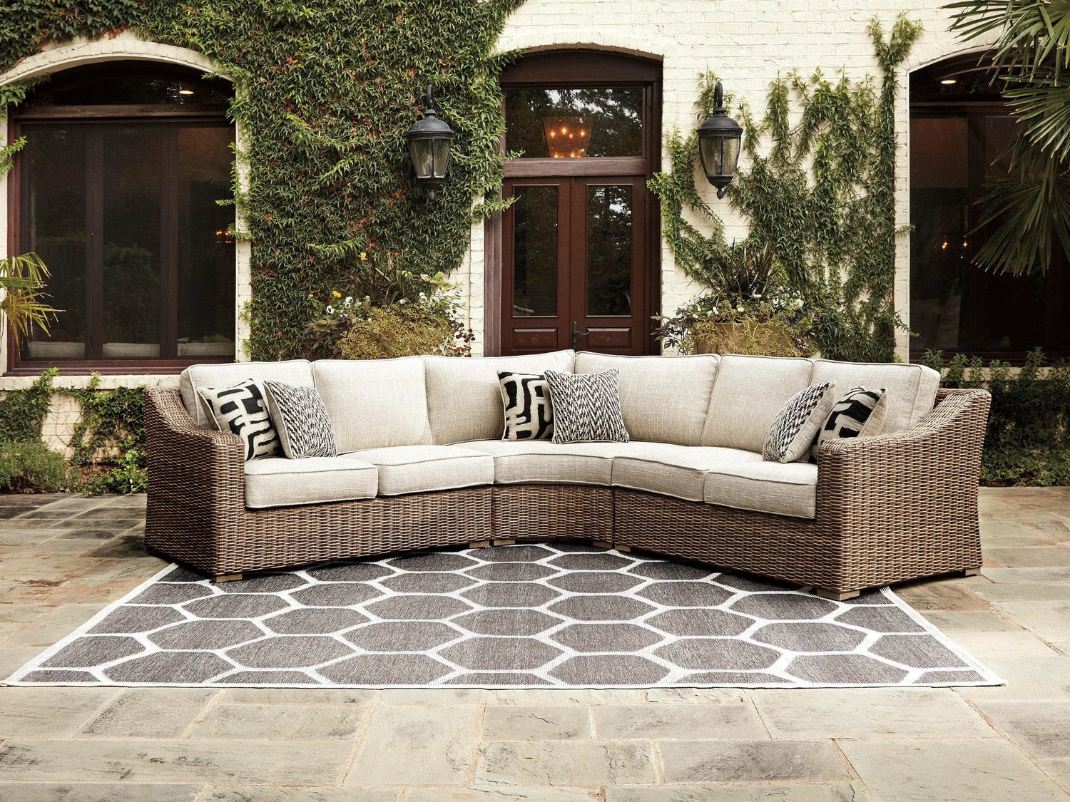 Beachcroft Beige 3pc L Shape Outdoor Sofa Set w/ Cushion