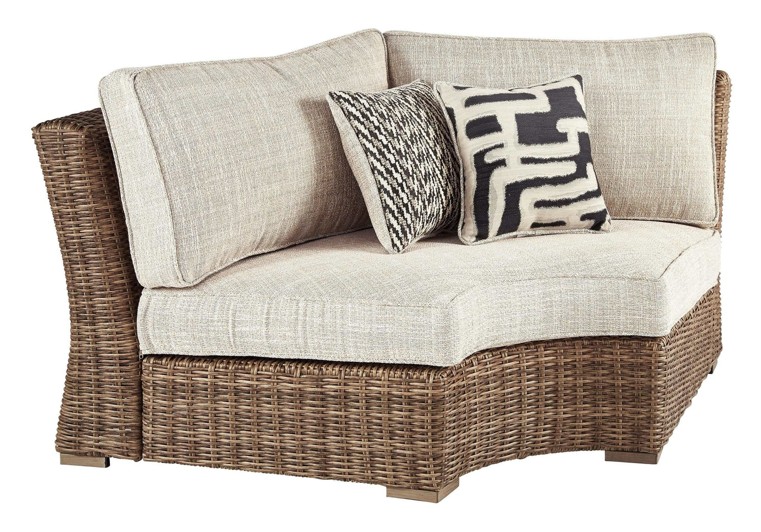 - Zippered cushions and throw pillows covered in high-performing Nuvella fabric