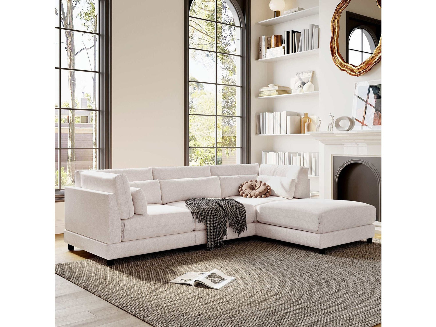 Dunes 2 Pieces L shaped Sofa with Removable Ottomans Beige