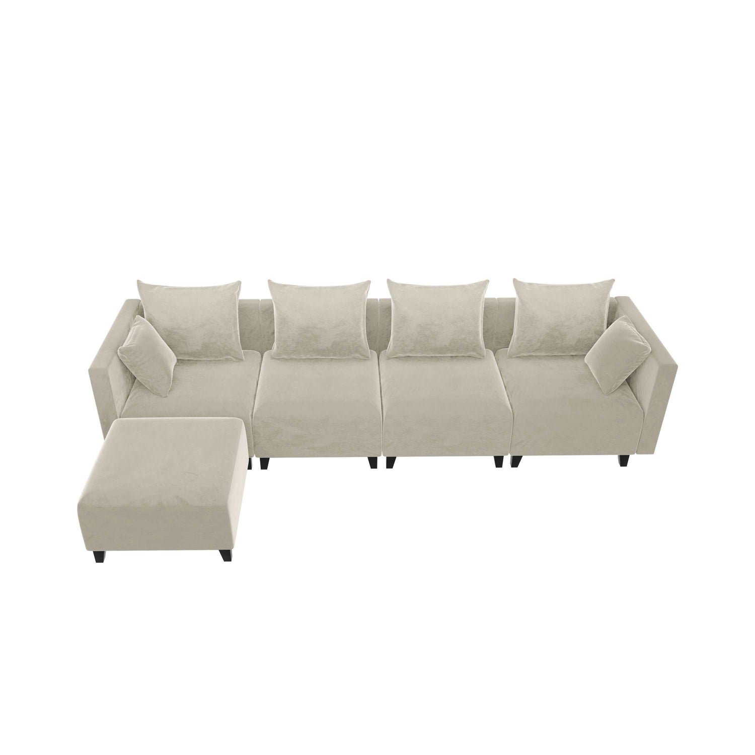 Merced Luxe Velvet L-Shaped Sectional Sofa Beige
