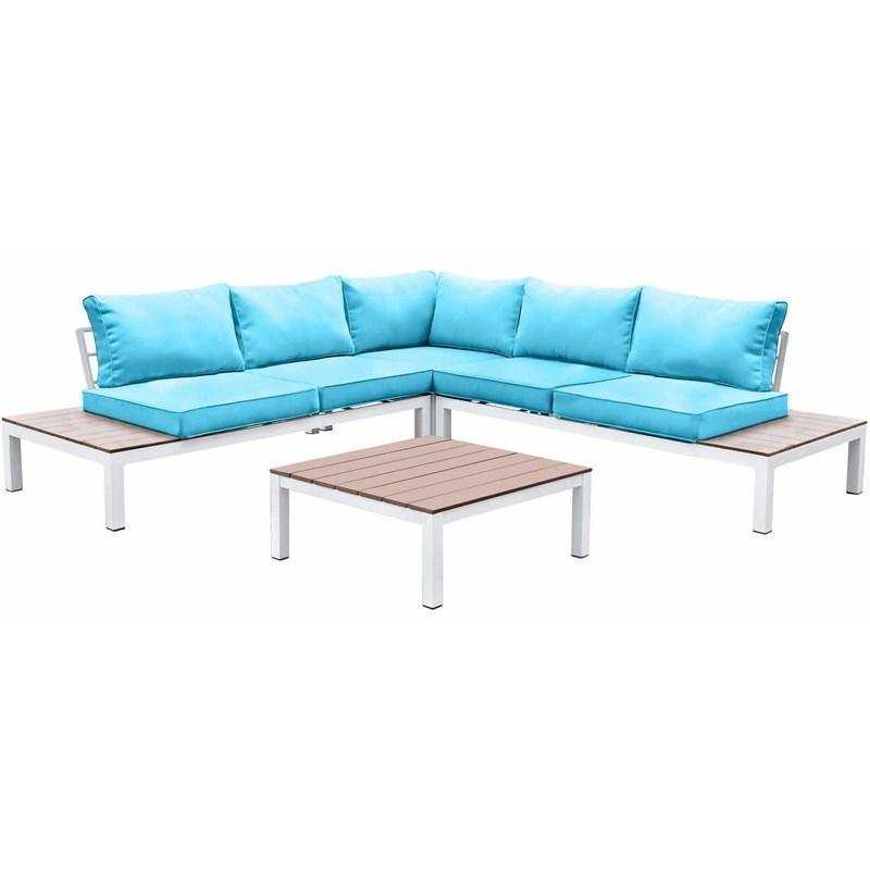 Winona White, Oak & Blue Outdoor L Shape Sectional w/ Coffee Table