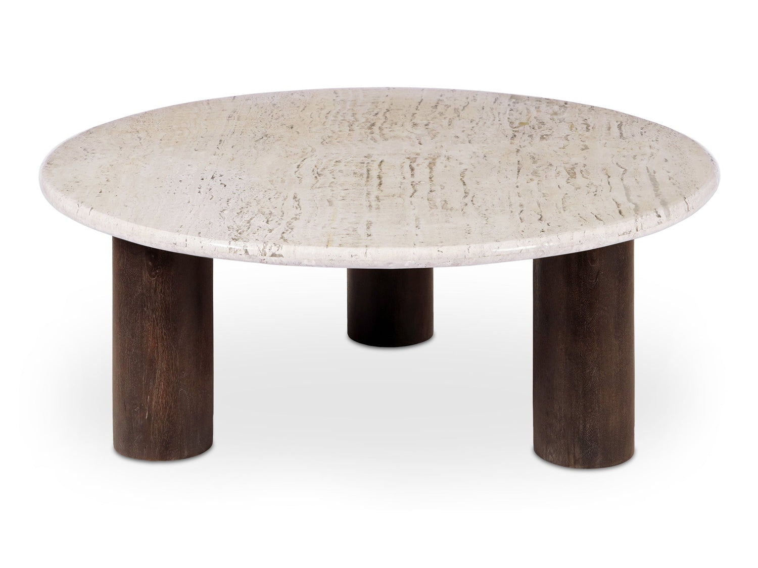 The Landon coffee table encapsulates design and proportion, crafted with a generous 30mm-thick Turkish travertine tabletop and a mango wood base stained in a rich, dark hue. The rounded tabletop edge gives the travertine a soft feeling, while the darkly stained mango wood base adds warmth to the hardened material. Note that no two tables are alike, showcasing their own color and veining variation.
