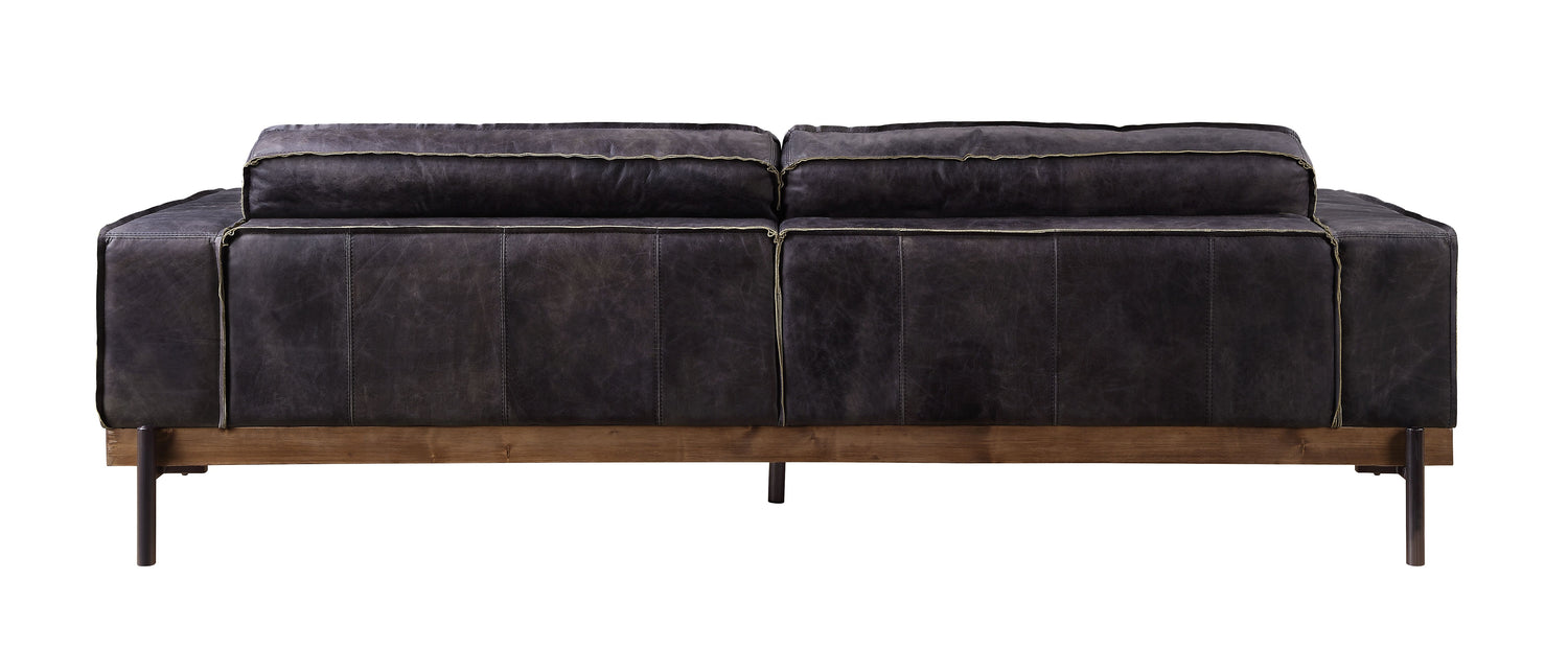 Part of the handsome Silchester Collection, this modern sofa set will look great in any contemporary space. Contrast stitching makes the antique ebony top-grain leather upholstery pop, and highlights the warm color of the wooden trim base. Metal spindle legs visually lighten the substantial proportions of this sofa set. Enjoy wide track arms and comfortable feather and foam seat construction, and relax in style.