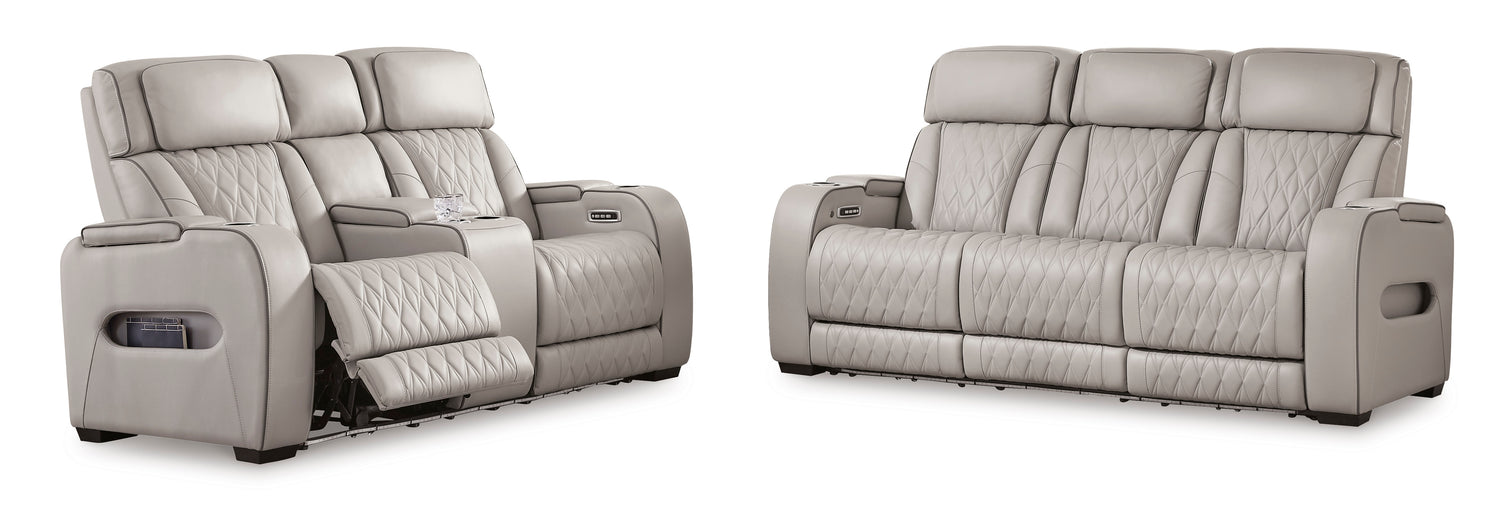 Boyington Gray Power Reclining Sofa and Loveseat