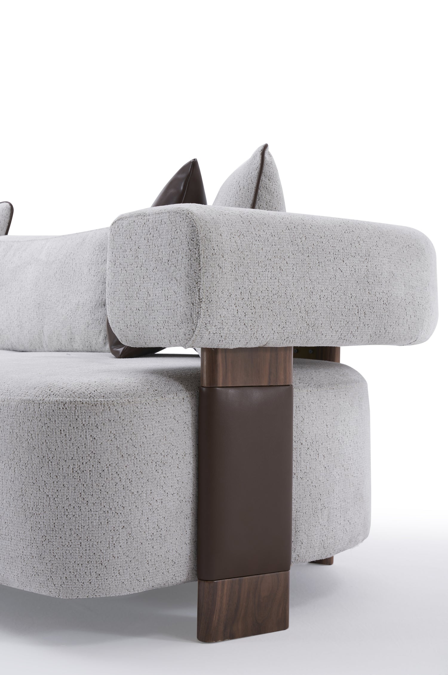 Elevate your living space with our Indigo White & Walnut Living Room Set. Its sleek design, combined with premium wood and soft fabric, creates a modern and inviting atmosphere. The living room set exudes a modern and sophisticated aesthetic with a touch of classic elegance. The clean lines, neutral color palette, and high-quality materials create a timeless and inviting atmosphere.