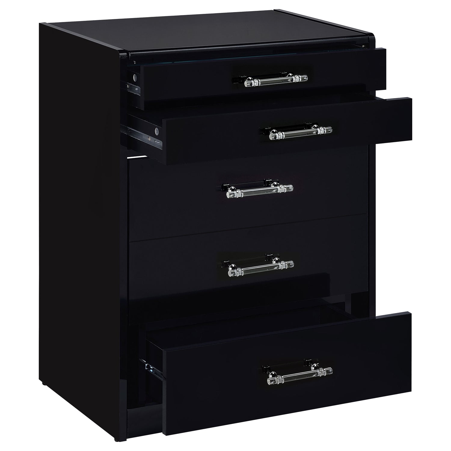 - Includes: One (1) vanity set- Black high gloss makeup vanity set crafted from engineered wood with eco