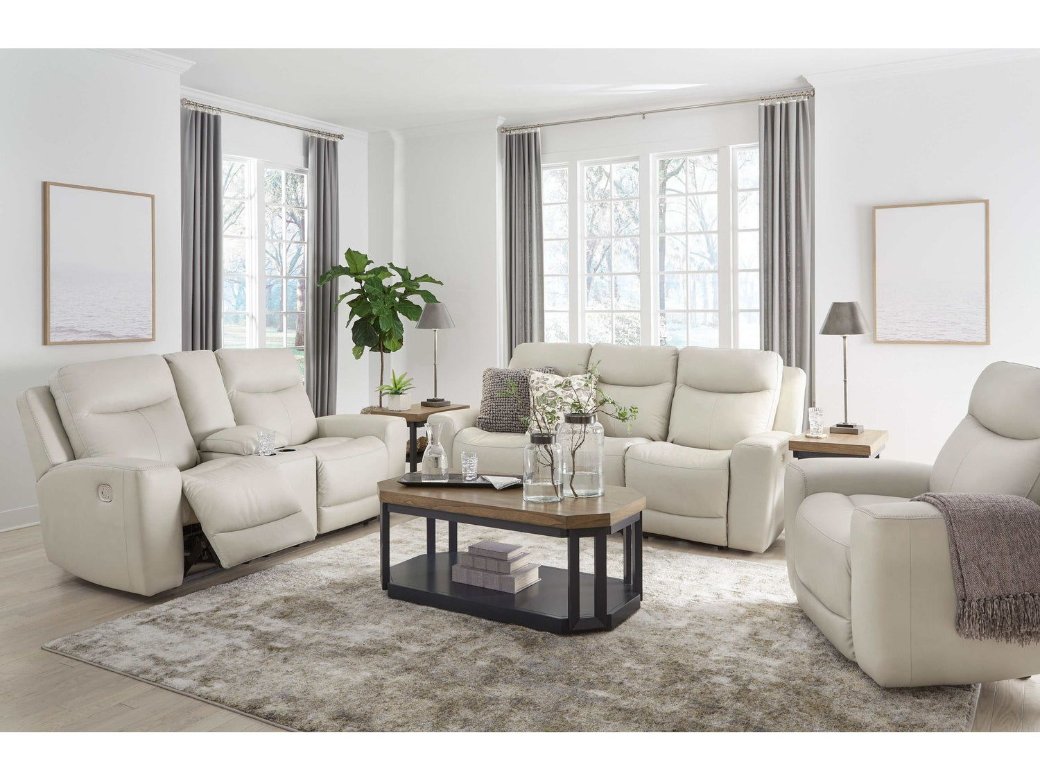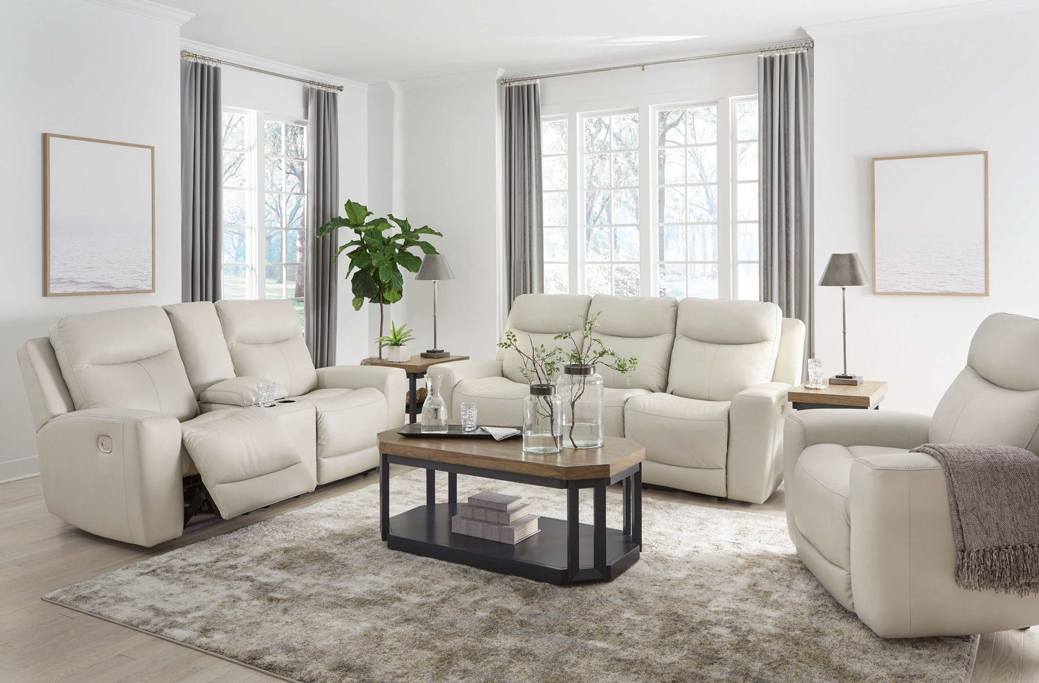 If sleek and modern is your style, this seating package is ready to deliver a fresh look in comfort furniture. With a plethora of power features and perfectly positioned scoop seats for unparalleled relaxation, this set will be your go-to spot for watching TV, reading or just drifting off to sleep.