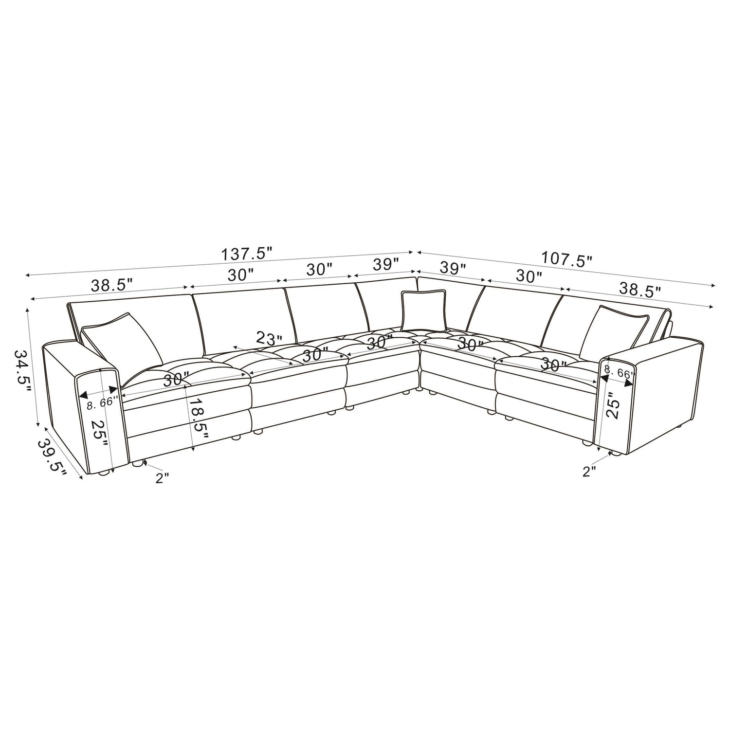 Sectional Dimensions: 137.5" W x 107.5" D x 34.5" H & Weight: 326.27 lbs