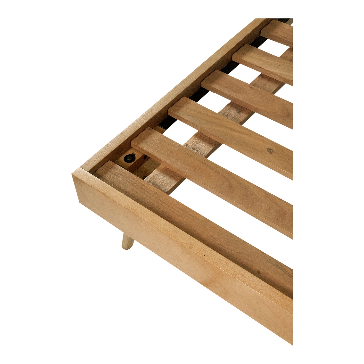 - Made of solid mango wood with a light oak matt finish- Supportive slats are included with this design to ensure the mattress doesn’t sink or slide, no box spring necessary