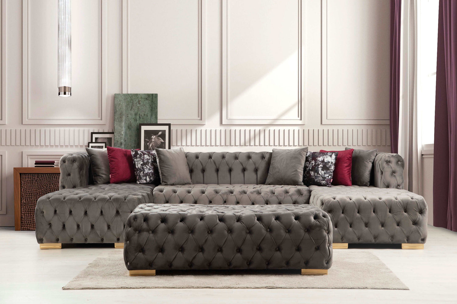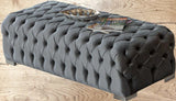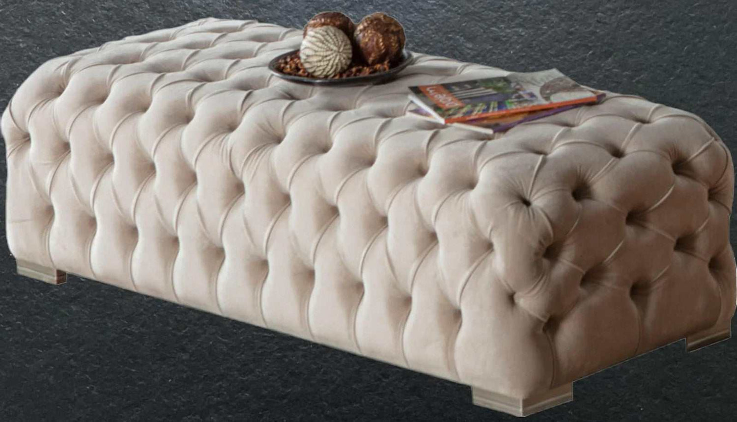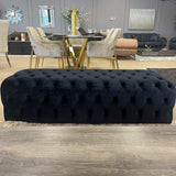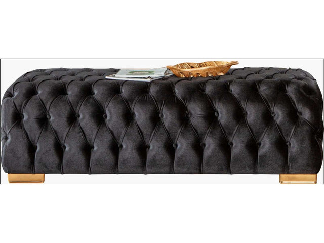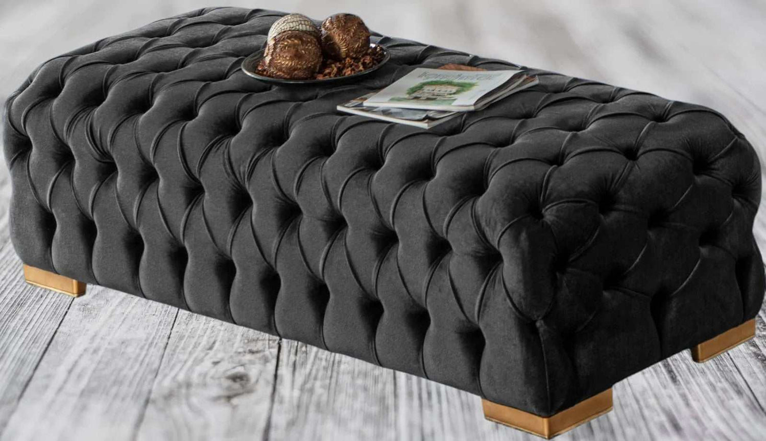 This timeless and stunning design black upholstered oversized ottoman brings glamour and indulgence into the here and now. Its button-tufted details and sweeping profile are so rich and classic. Elegant feet in a dazzling gold-tone finish perform beautifully, too.