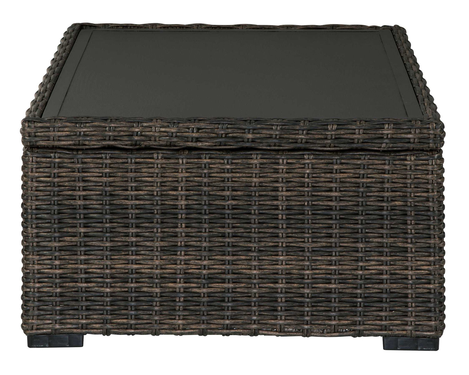 Style. Comfort. Quality. Value. This outdoor coffee table really goes to town giving you the total package for outstanding outdoor living. Crafted to withstand the elements this outdoor table's resin wicker base and rust-proof aluminum frame ensure carefree living while the aluminum surfaces provide stylish appeal. Cool clean lined and casual its perfect for use inside or out.
