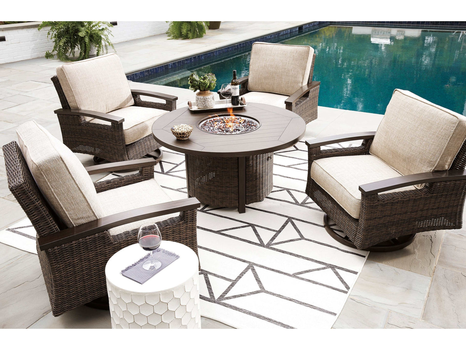Paradise Trail Medium Brown Outdoor Fire Pit Table & Chair Set / 5pc