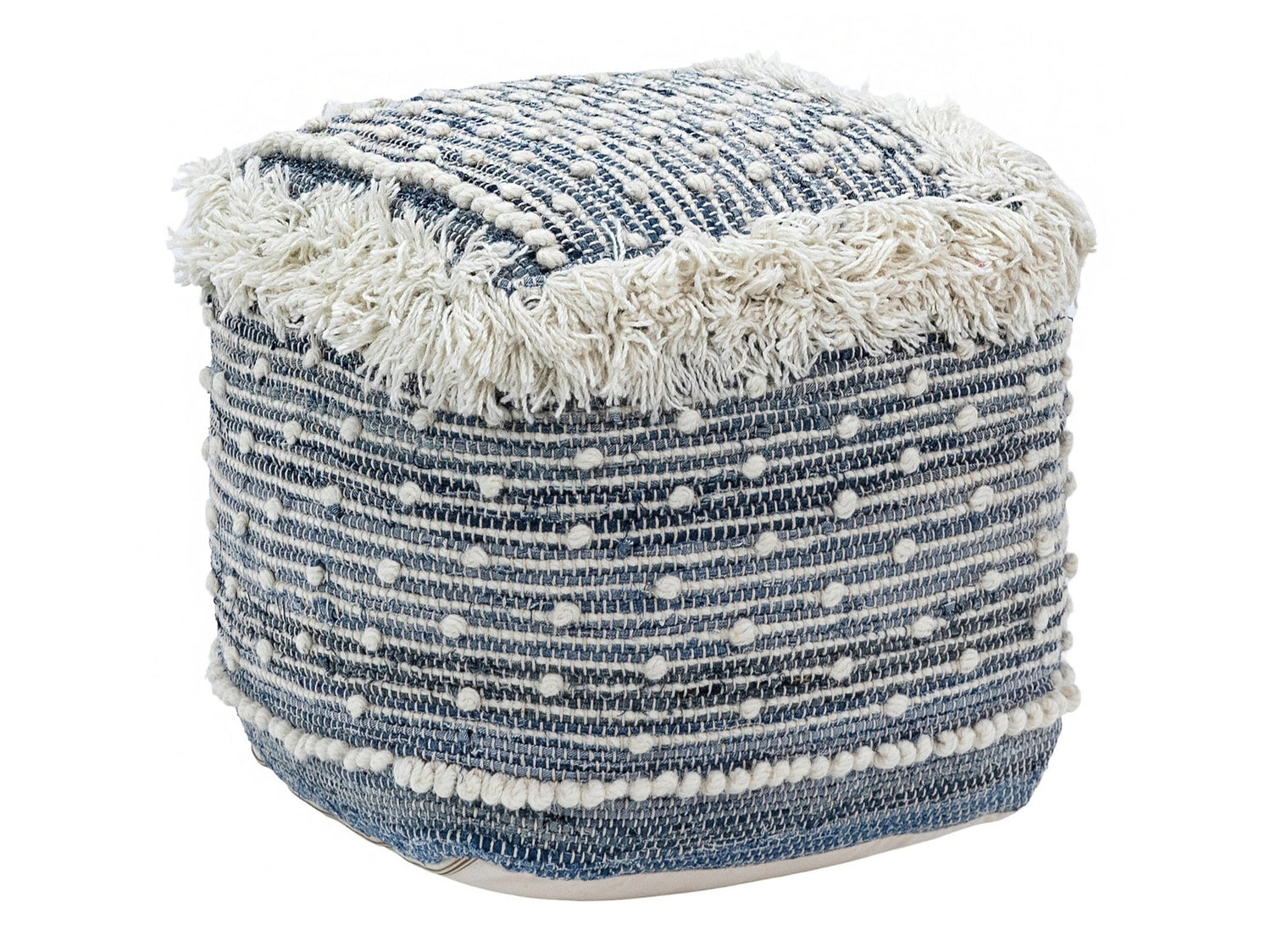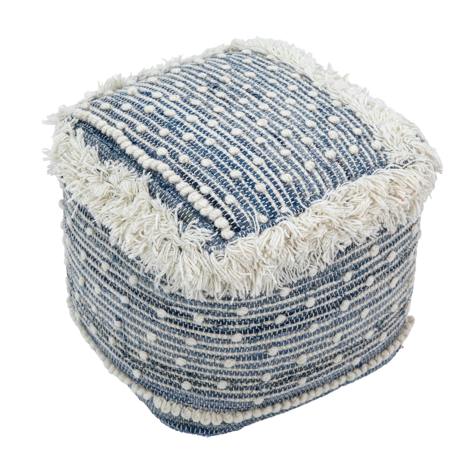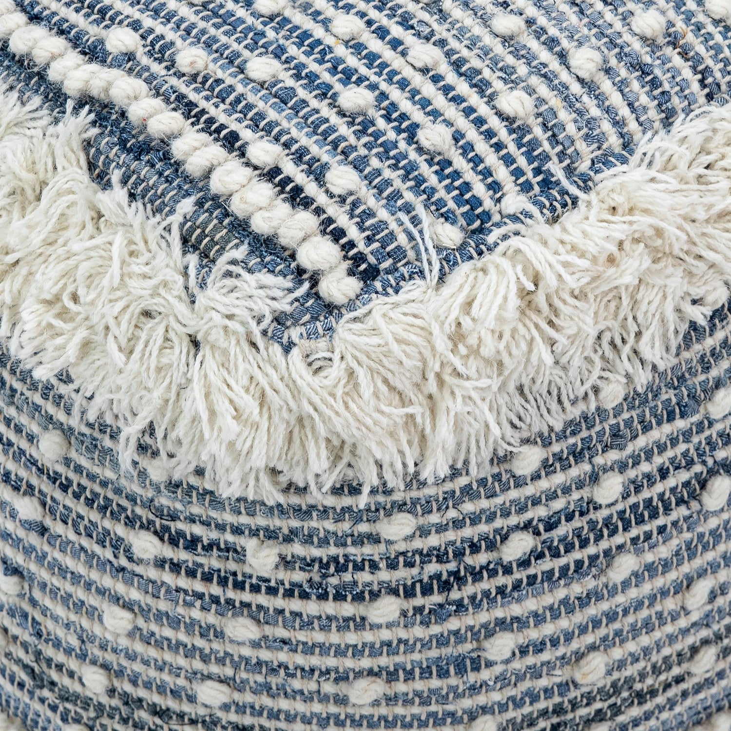Meticulously crafted using a blend of wool and denim, our Felberta Pouf exudes both style and functionality. With its delightful fringed accents and charming hand-knitted polka dots, it brings a touch of texture and natural charm to any corner of your home. Whether used as extra seating, a footrest, or simply as a decorative accent, this pouf adds a cozy and inviting atmosphere to your living space. Embrace the unique beauty and artisanal craftsmanship of this pouf as it effortlessly elevates your home decor with its distinctive design and cozy appeal.