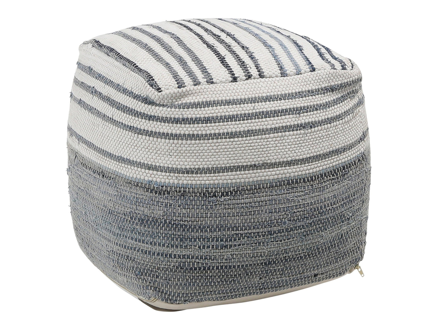 Embellish your home with this cozy and versatile 16'x16' squared pouf. Customized with a unique variety of textures and materials utilizing recycled denim and sustainable cotton. Displaying denim blue and white tones for a simplistic yet sophisticated look that can fit any home decor.