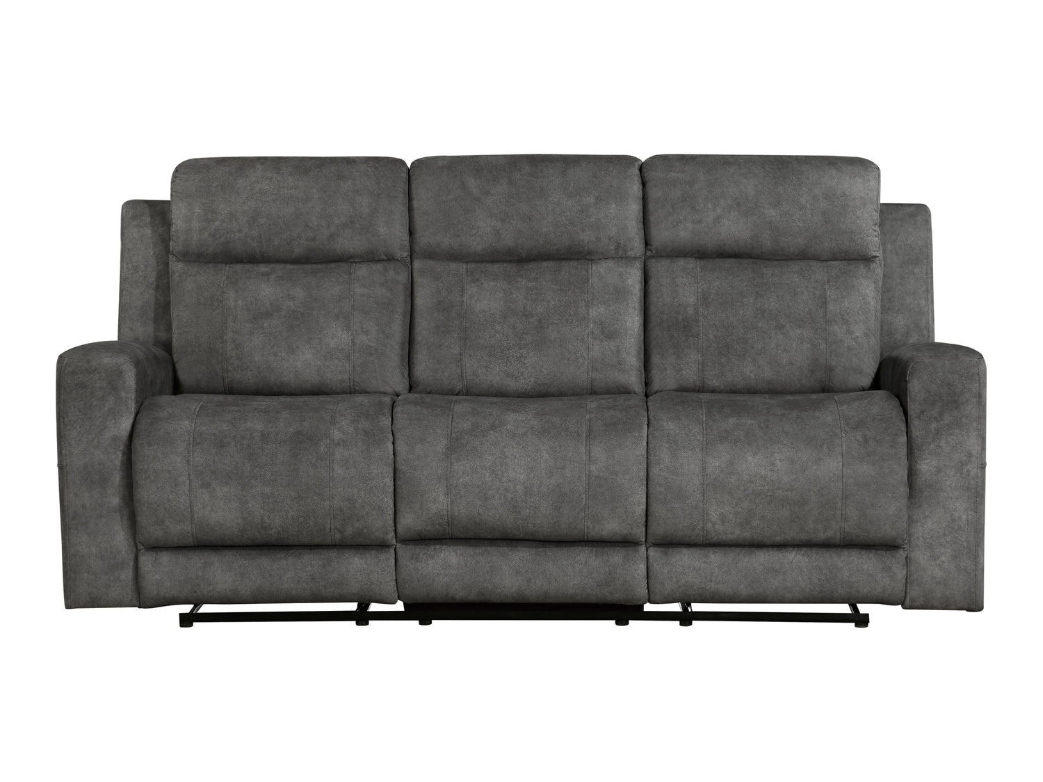 The Yates Collection pairs subtle modern lines with classic comfort, creating a seating group perfect for your casual living room. The dual ends of the sofa are engaged with a pull of the side mounted tab, taking your seated experience to the next level of comfort. Dark brownish-gray textured microfiber covers the collection lending soft touch and decorative versatility.