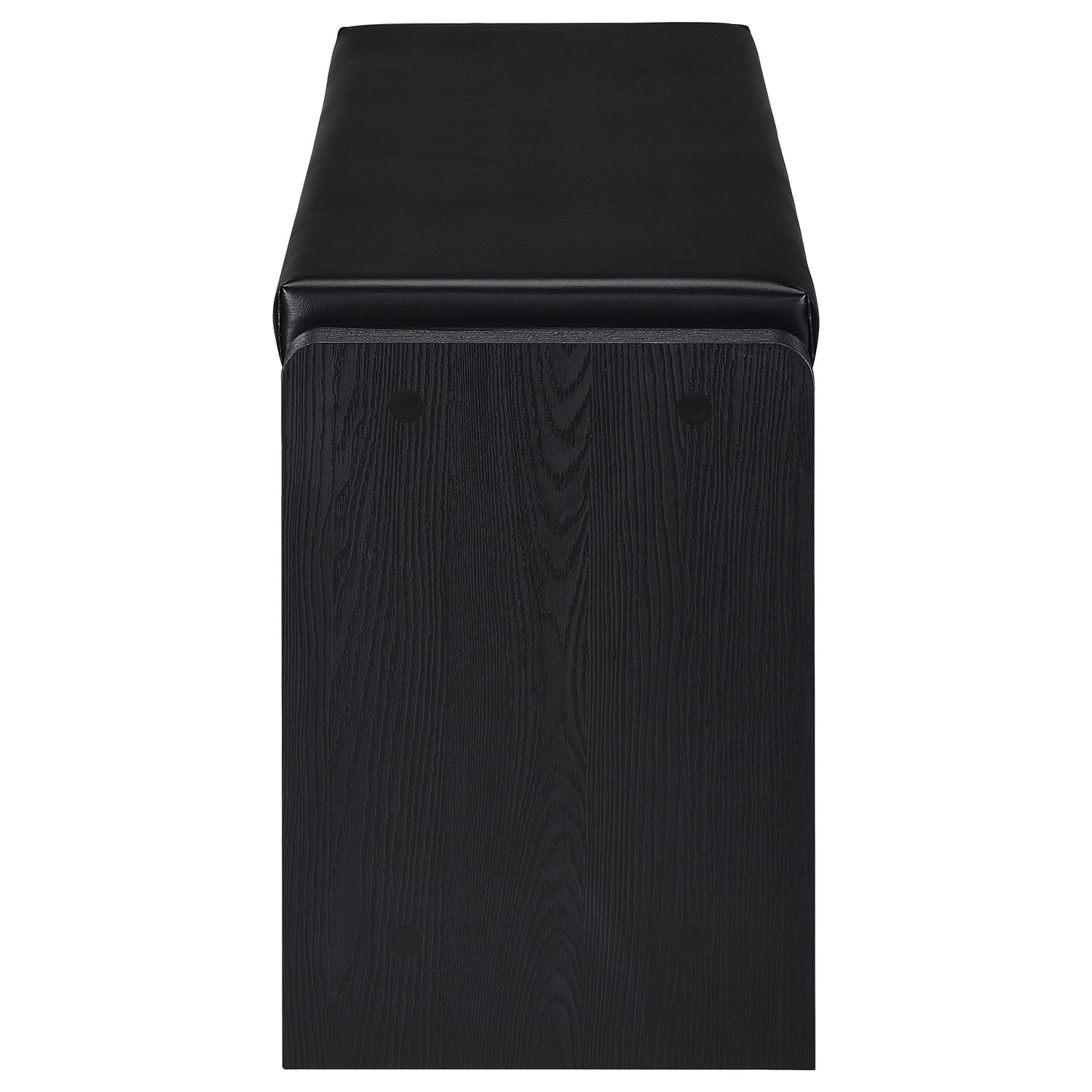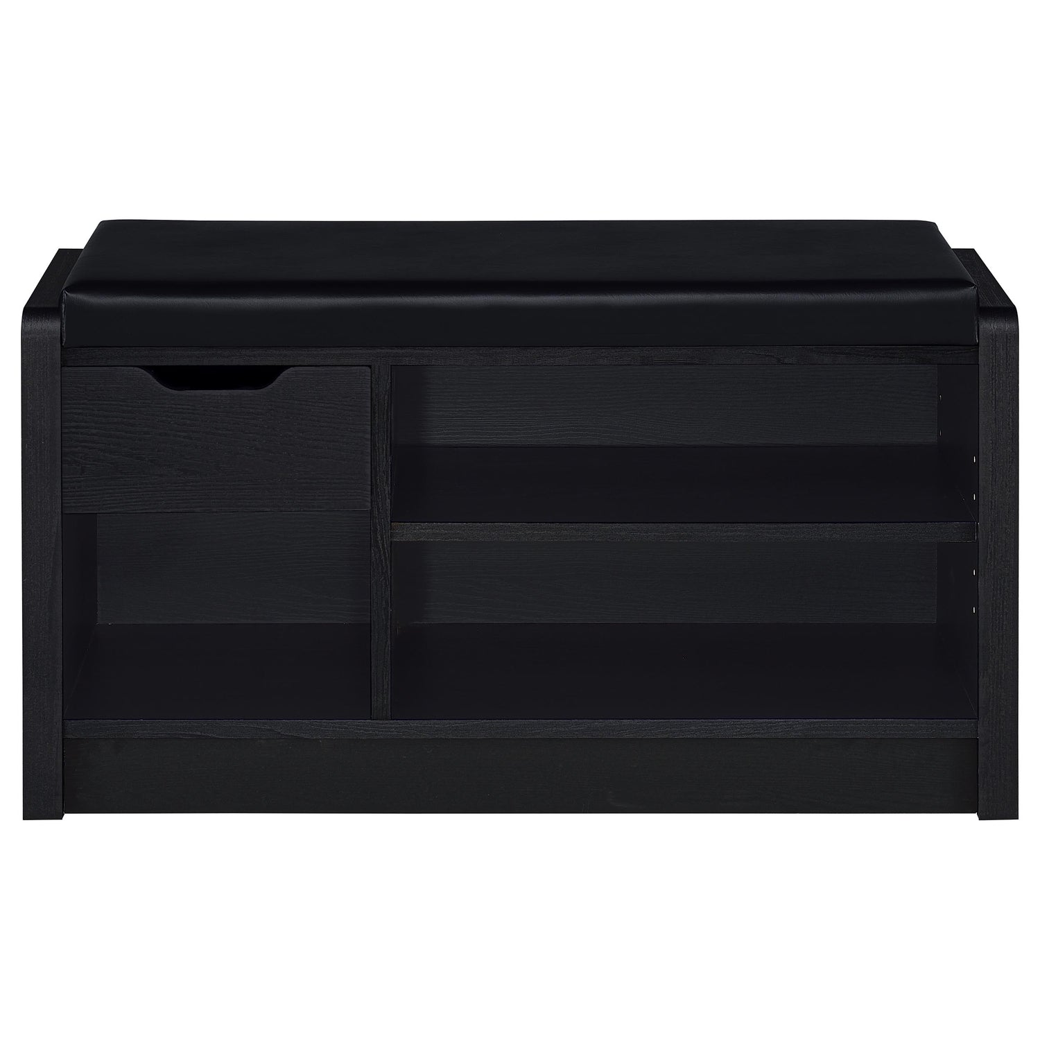- Includes: One (1) storage bench- Storage bench with comfortable foam cushion and black faux leather upholstery