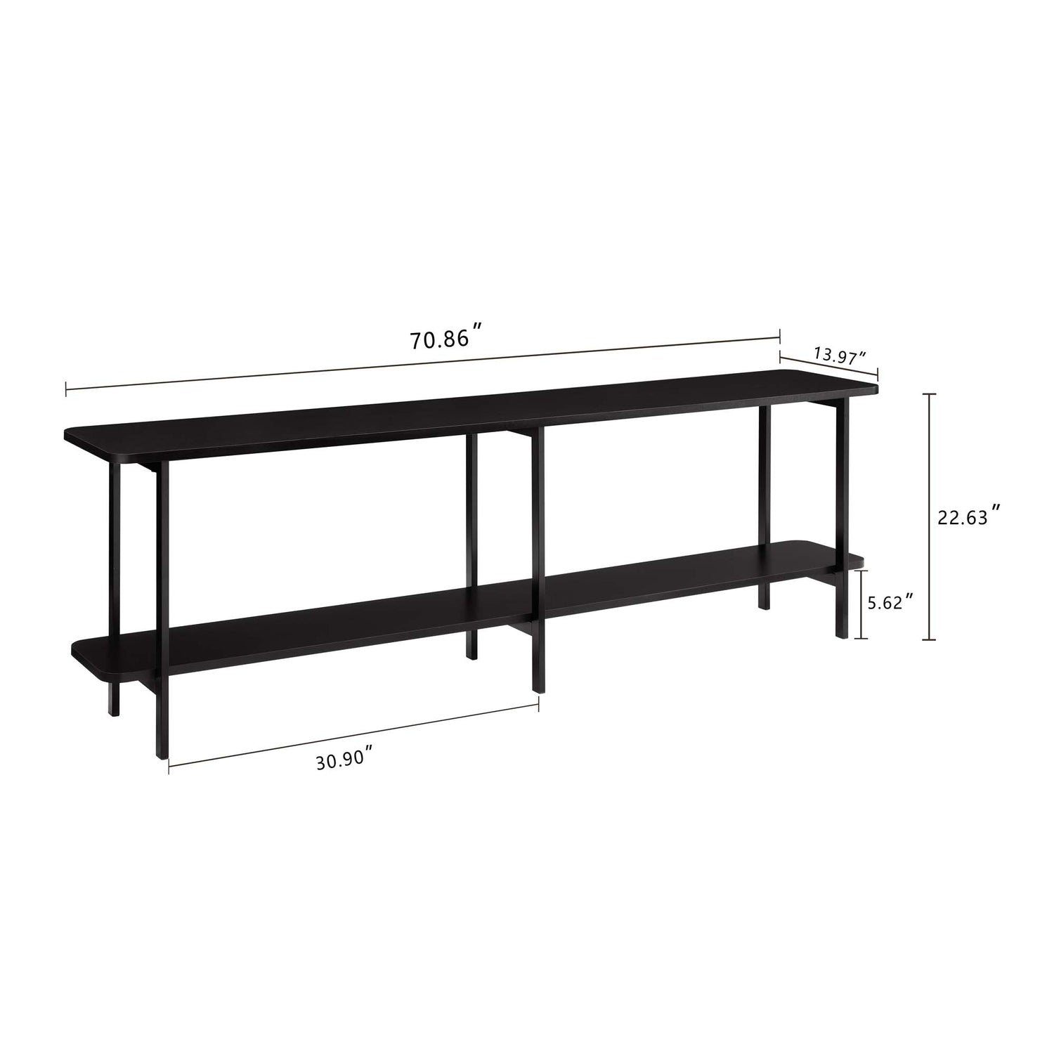 - Upon assembly, Side Table / Console Dimensions Measure: 70.87 in. Length, 22.64 in. Height, 13.98 in. Depth.