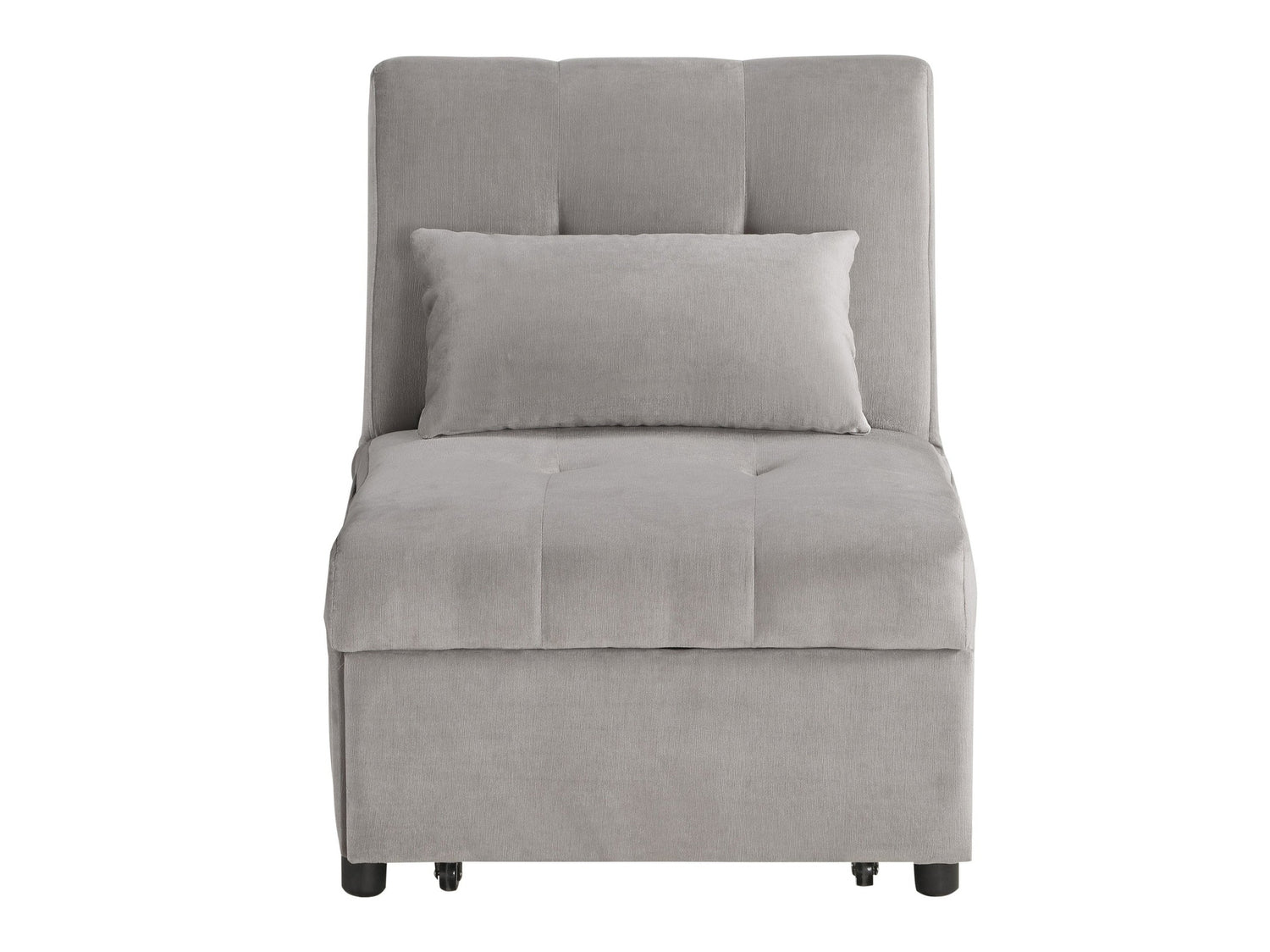 The convenience of the multi-functional Garrell Collection will add modern accent and functionality to meet the need for extra sleep space, storage and seating all in one cleverly designed bench. Half of the bench opens to reveal hidden storage, allowing for the raised portion to turn the bench into a seat. The pop-up unit allows for extension creating a convenient sleep platform that is fully engaged with the seatback returned to a flat position. A coordinating pillow is also included. Allowing for perfect placement within your decorative environment, the bench is offered in a brownish-gray velvet.