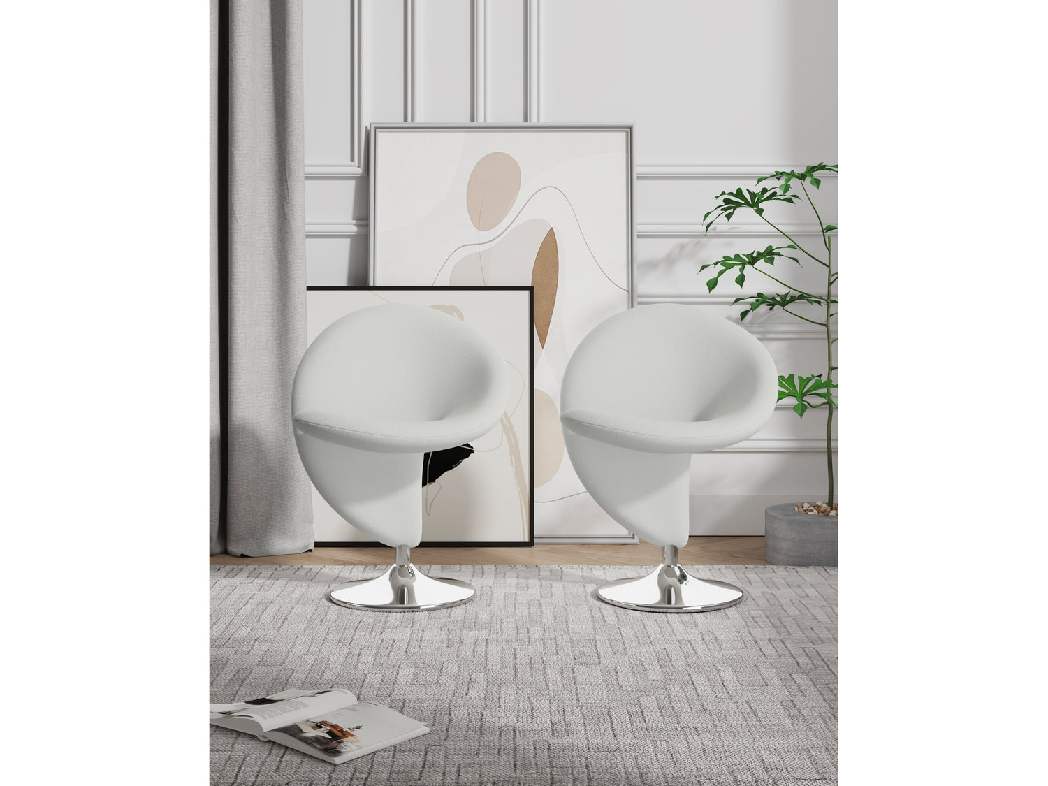 - Item Name: Curl Swivel Accent Chair in Cream and Polished Chrome (set of 2)