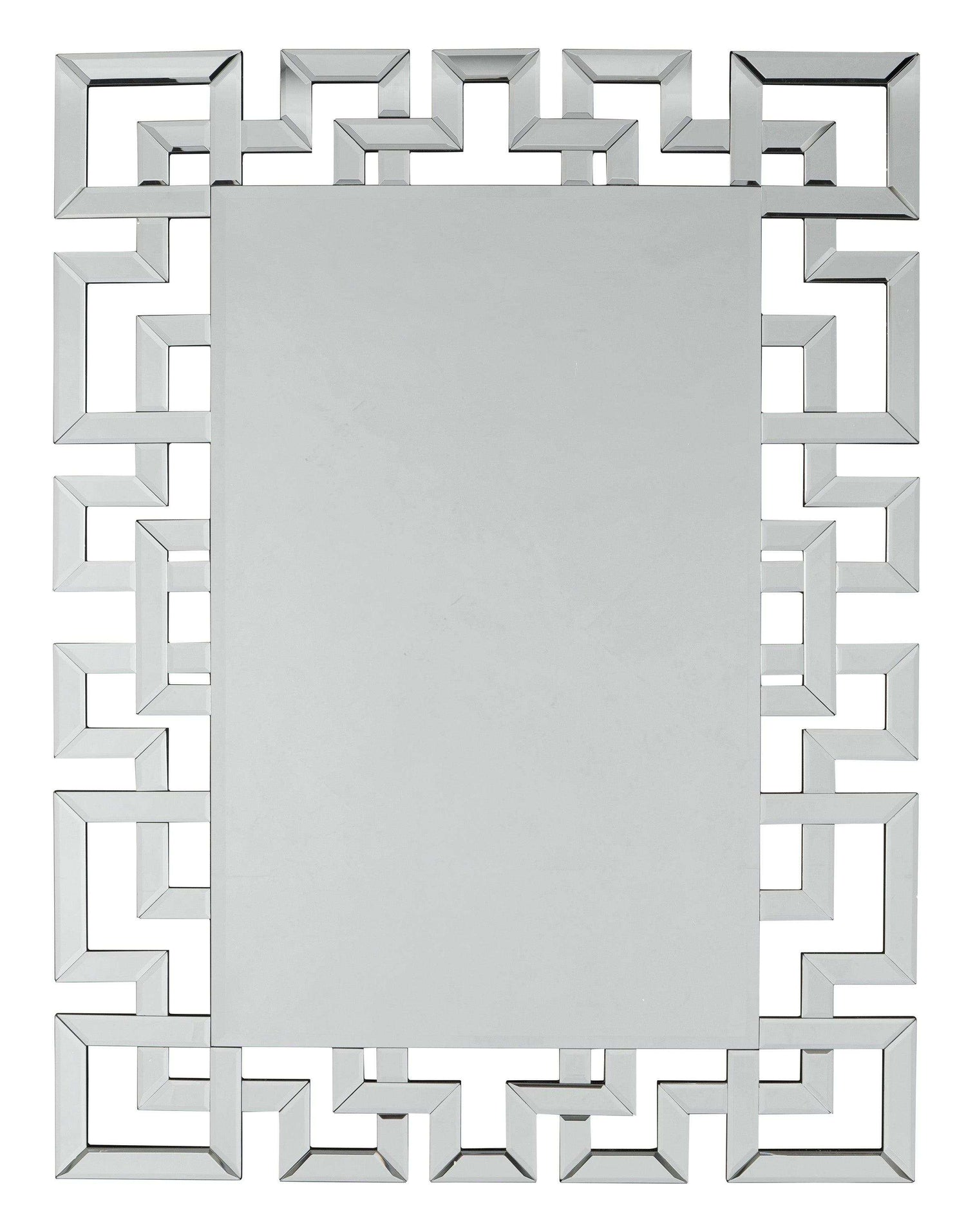 An accent piece does not have to take a back seat to the rest of the room decor. This frameless wall mirror is one such piece. It's four feet high, perfect for checking your fashion from head to toe. Yet, it's the interlocking frameless Greek key design that makes this mirror such a showpiece. The interlocking design features a mirror finish that's sure to look great in any room.