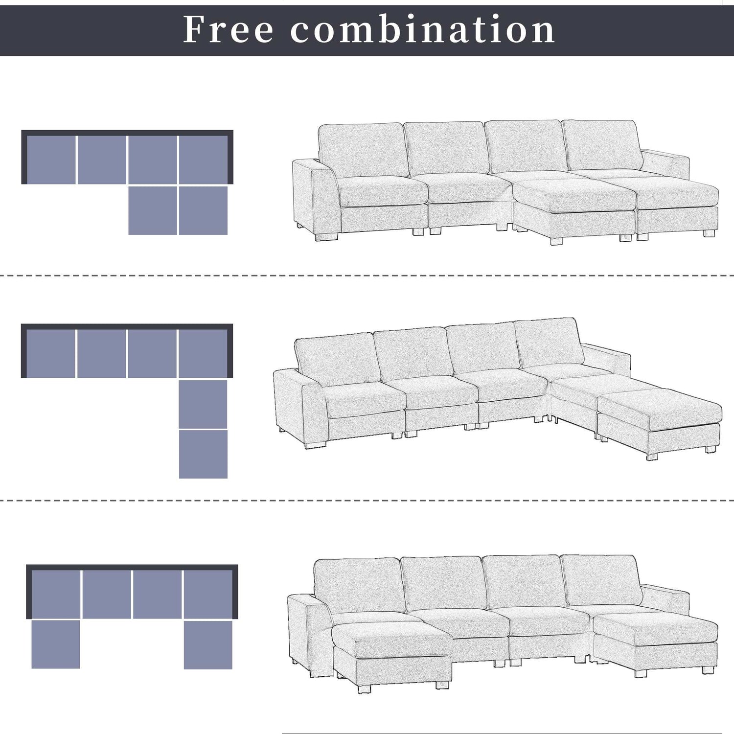 The sofa's versatile design allows you to arrange it in various configurations. It comes with two chaises, each equipped with a removable ottoman, providing the flexibility to customize your seating to your liking. Whether you prefer a left or right facing layout or both chaises on one side, this sofa adapts effortlessly to your needs.